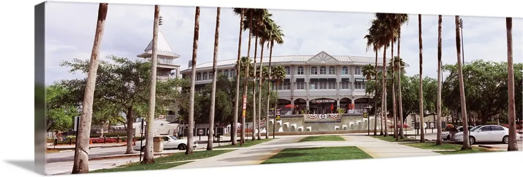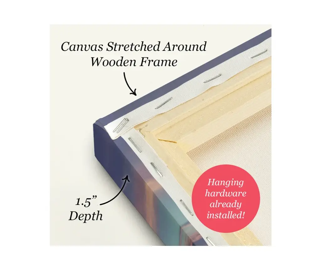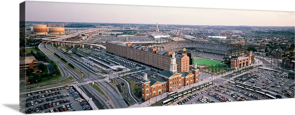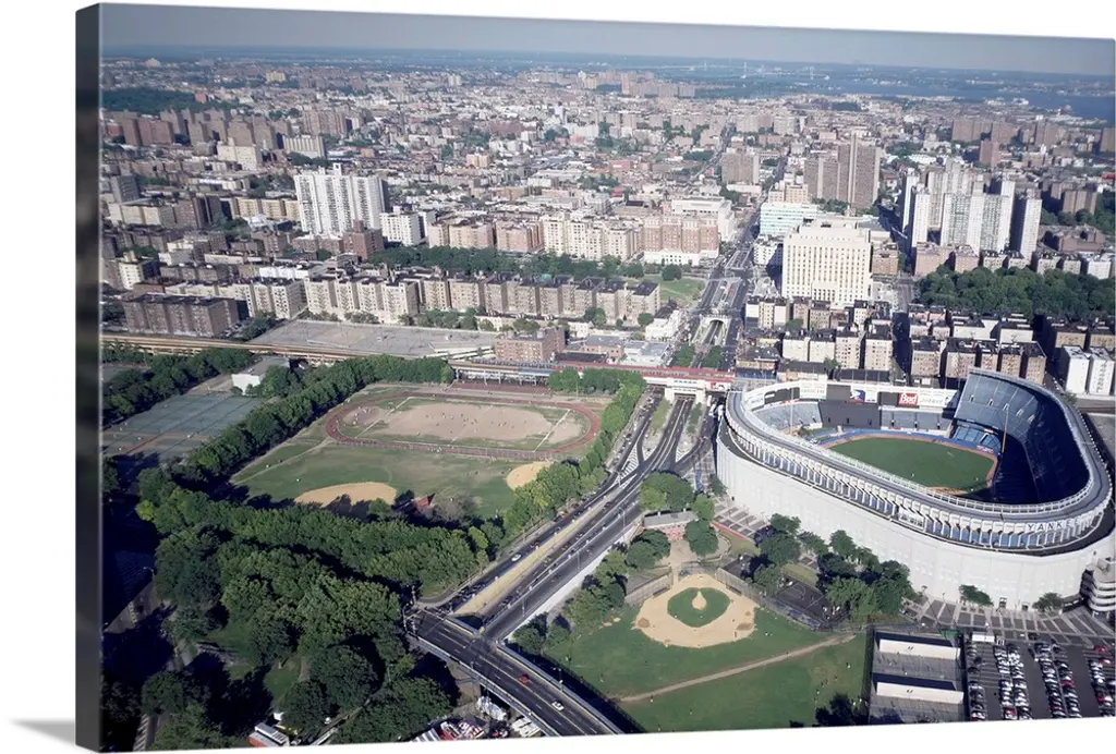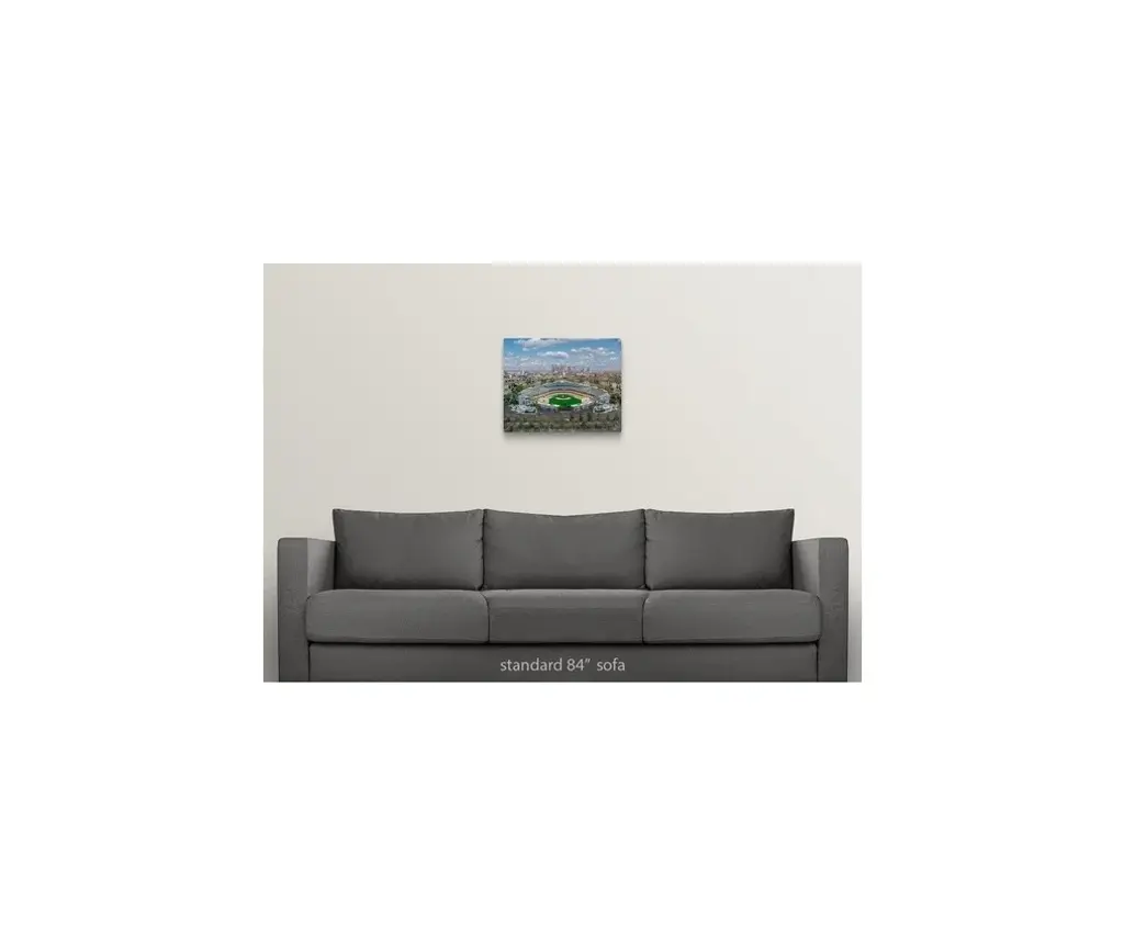 Gallery-Wrapped Canvas entitled 'Los Angeles Dodger Stadium'. Aerial view of the Dodger Stadium with the Los Angeles skyline in the distance, California. Multiple sizes available. Primary colors within this image include: Light Gray, White, Dark Forest Green, Royal Blue. Made in the USA. Satisfaction guaranteed. Archival-quality UV-resistant inks. Museum-quality, artist-grade canvas mounted on sturdy wooden stretcher bars 1.5" thick. Comes ready to hang. Canvas is acid-free and 20 millimeters thick.