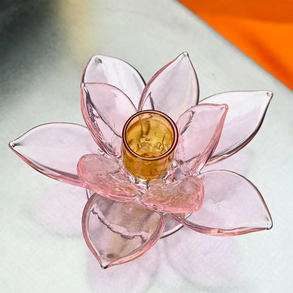 Lotus Pink Glass Candleholder By Summerill & Bishop