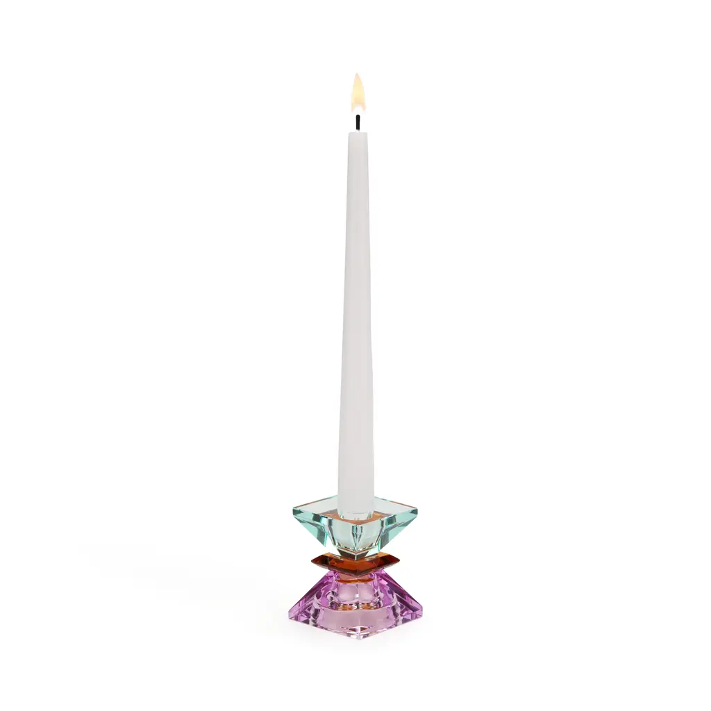 A superb design masterfully handcrafted of mouth-blown glass, this candle holder is created in co-creation with Summerill and Bishop London. From the sketch of Summerill and Bishop London and the work of Catherine Urban and the glass masters, sprout this co-creation collection of two candleholders: Iris and Lotus. Glass opens like a flower, holding in its center the space for a candlestick. Colors are light and delicate, in the nuances of spring nature.