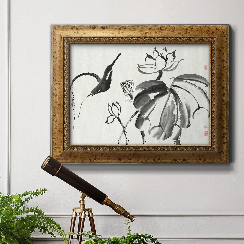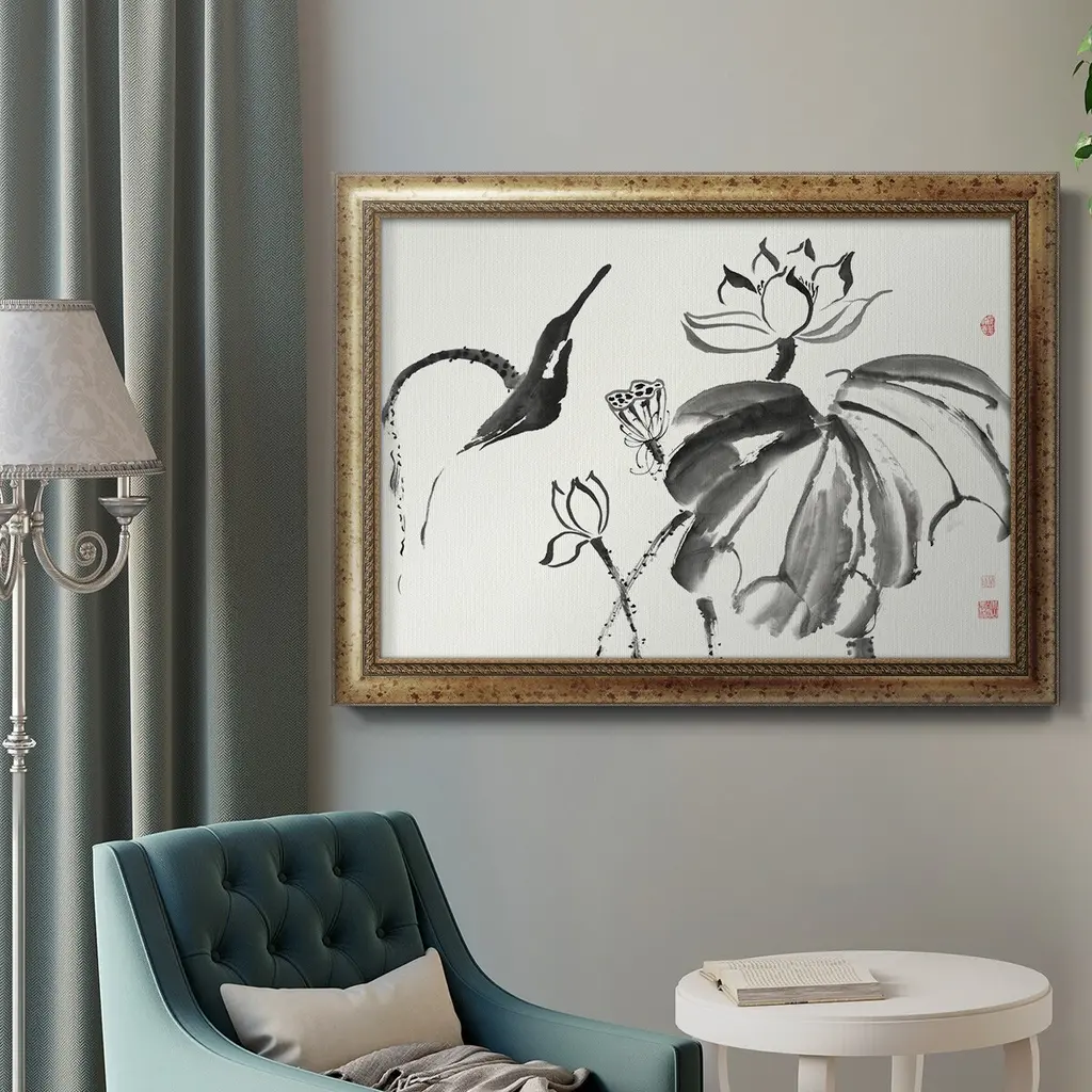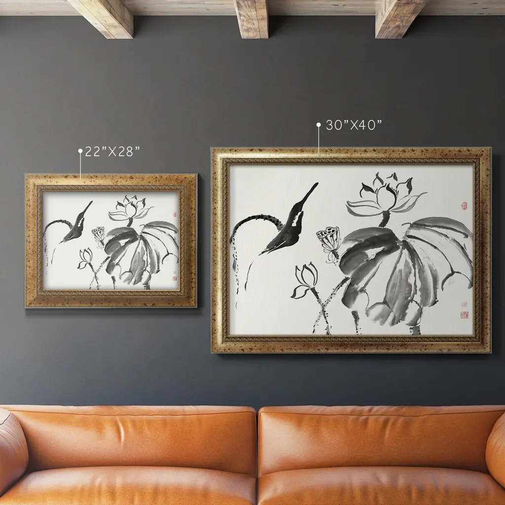 Lotus Study I Premium Framed Canvas- Ready to Hang A Premium Framed Canvas created to last. Framed in distressed wood and available in an array of sizes and colors Featuring a beveled a solid wood stretcher bar, each piece comes ready to hand 3 SIZES AVAILABLE 16''X20'' - Overall Size 18'X27'' - Overall Size 24''x36'' - Overall Size Each piece is made to order. Each piece comes with hanging hardware. Made in the USA Ready to Hang Giclee Paper Print Acrylic Glass Beveled Matt Board