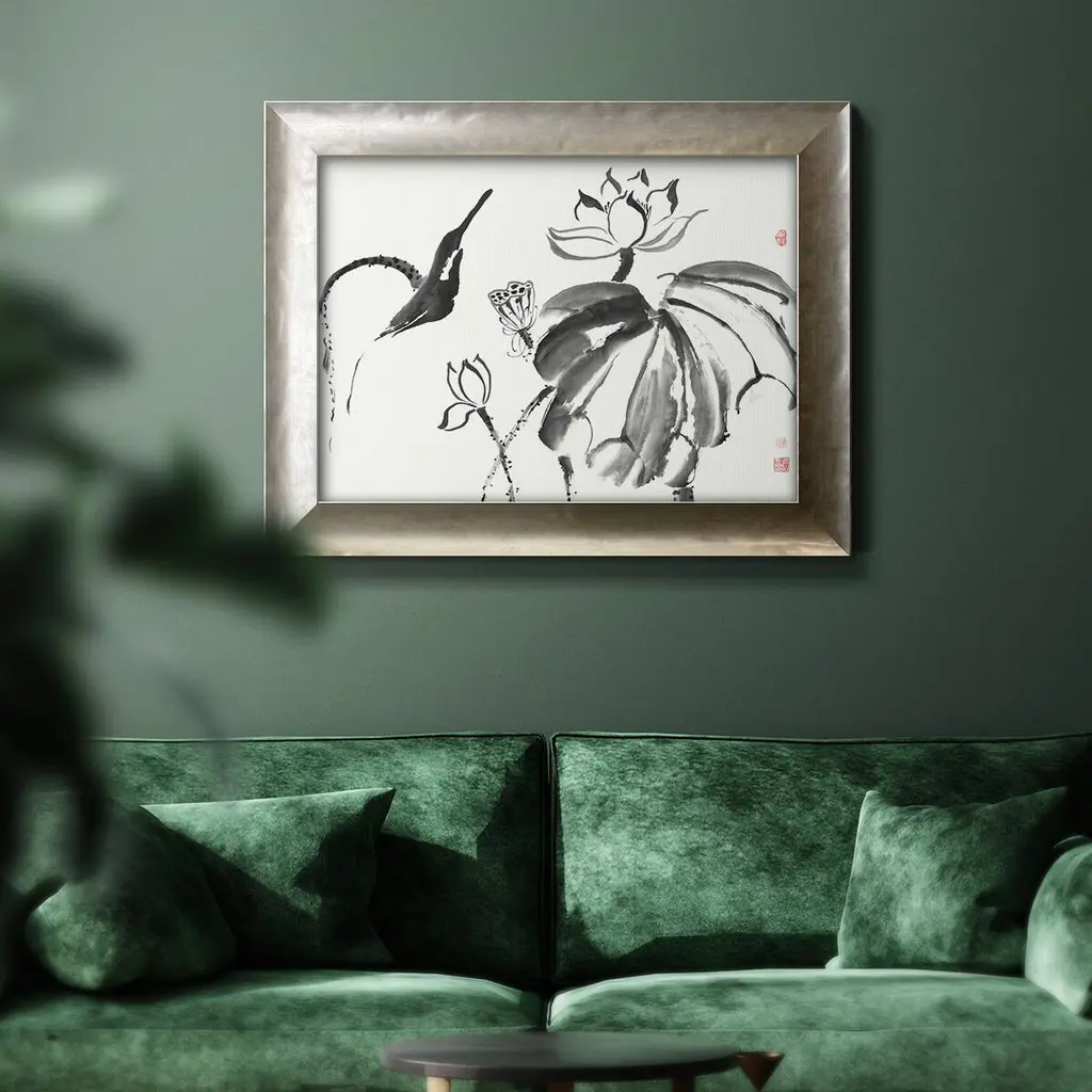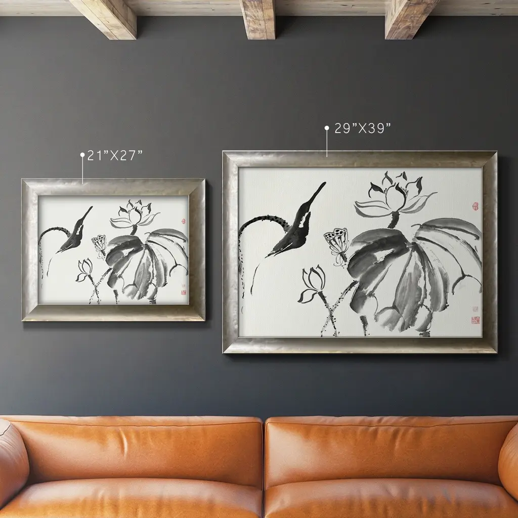 Lotus Study I Premium Framed Canvas- Ready to Hang A Premium Framed Canvas created to last. Framed in distressed wood and available in an array of sizes and colors Featuring a beveled a solid wood stretcher bar, each piece comes ready to hand 3 SIZES AVAILABLE 16''X20'' - Overall Size 18'X27'' - Overall Size 24''x36'' - Overall Size Each piece is made to order. Each piece comes with hanging hardware. Made in the USA Ready to Hang Giclee Paper Print Acrylic Glass Beveled Matt Board
