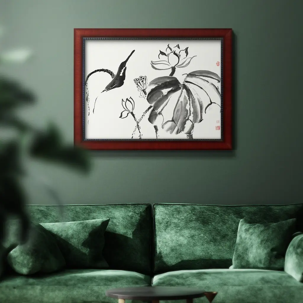 Lotus Study I Premium Framed Canvas- Ready to Hang A Premium Framed Canvas created to last. Framed in distressed wood and available in an array of sizes and colors Featuring a beveled a solid wood stretcher bar, each piece comes ready to hand 3 SIZES AVAILABLE 16''X20'' - Overall Size 18'X27'' - Overall Size 24''x36'' - Overall Size Each piece is made to order. Each piece comes with hanging hardware. Made in the USA Ready to Hang Giclee Paper Print Acrylic Glass Beveled Matt Board