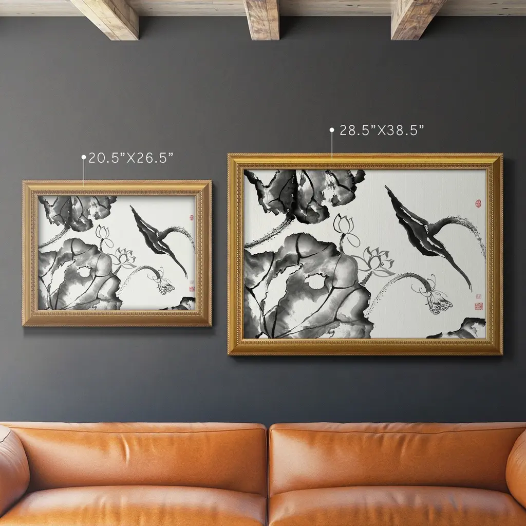 Lotus Study II Premium Framed Canvas- Ready to Hang A Premium Framed Canvas created to last. Framed in distressed wood and available in an array of sizes and colors Featuring a beveled a solid wood stretcher bar, each piece comes ready to hand 3 SIZES AVAILABLE 16''X20'' - Overall Size 18'X27'' - Overall Size 24''x36'' - Overall Size Each piece is made to order. Each piece comes with hanging hardware. Made in the USA Ready to Hang Giclee Paper Print Acrylic Glass Beveled Matt Board
