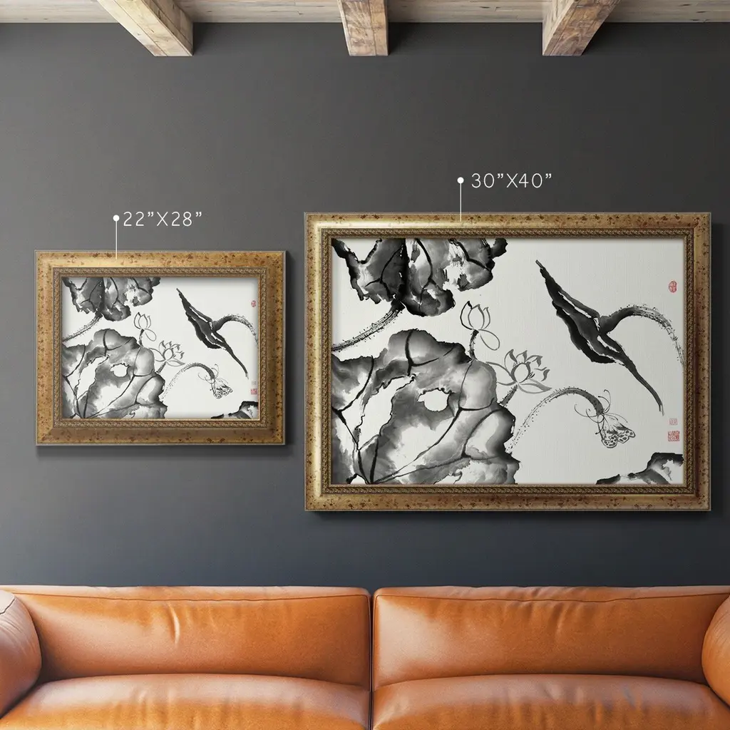 Lotus Study II Premium Framed Canvas- Ready to Hang A Premium Framed Canvas created to last. Framed in distressed wood and available in an array of sizes and colors Featuring a beveled a solid wood stretcher bar, each piece comes ready to hand 3 SIZES AVAILABLE 16''X20'' - Overall Size 18'X27'' - Overall Size 24''x36'' - Overall Size Each piece is made to order. Each piece comes with hanging hardware. Made in the USA Ready to Hang Giclee Paper Print Acrylic Glass Beveled Matt Board