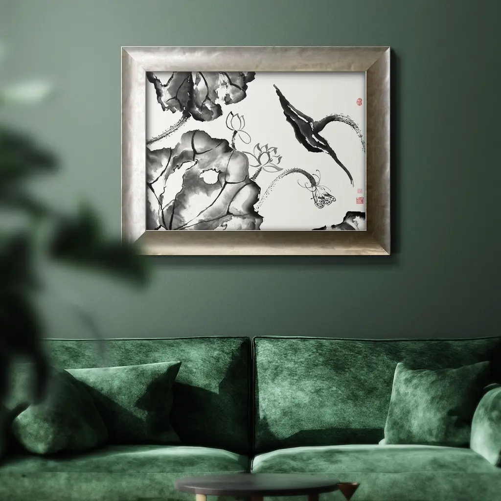 Lotus Study II Premium Framed Canvas- Ready to Hang A Premium Framed Canvas created to last. Framed in distressed wood and available in an array of sizes and colors Featuring a beveled a solid wood stretcher bar, each piece comes ready to hand 3 SIZES AVAILABLE 16''X20'' - Overall Size 18'X27'' - Overall Size 24''x36'' - Overall Size Each piece is made to order. Each piece comes with hanging hardware. Made in the USA Ready to Hang Giclee Paper Print Acrylic Glass Beveled Matt Board