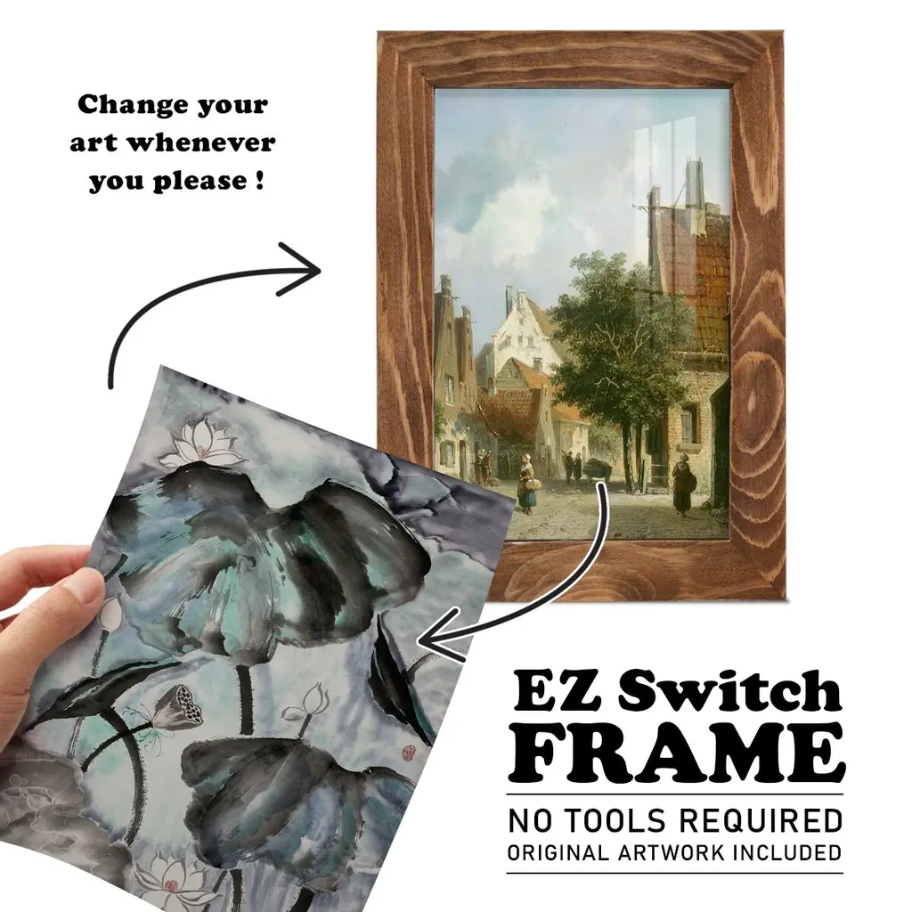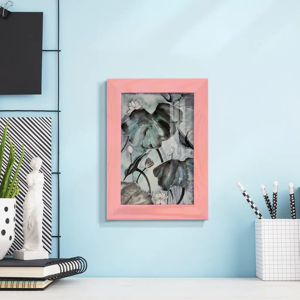 Lotus Study with Blue Green II -EZ SWITCH Framed Print w/glass-Cherry Red A delightful, framed print. Featuring a solid wood frame with real wood glass. This premium print is giclee quality. In addition, every frame features a removable back and table top stand. This allows you to change your art in the future or to just stand the art on a table for a new look. We are sure you'll enjoy our new series of EZ SWITCH Framed Art. Solid Wood Frame Real Glass Removable / Replaceable Art Built in Tabletop Stand Sizes range from 4x6 up to 12x15 - buy just one or pair them up as sets as you see fit.