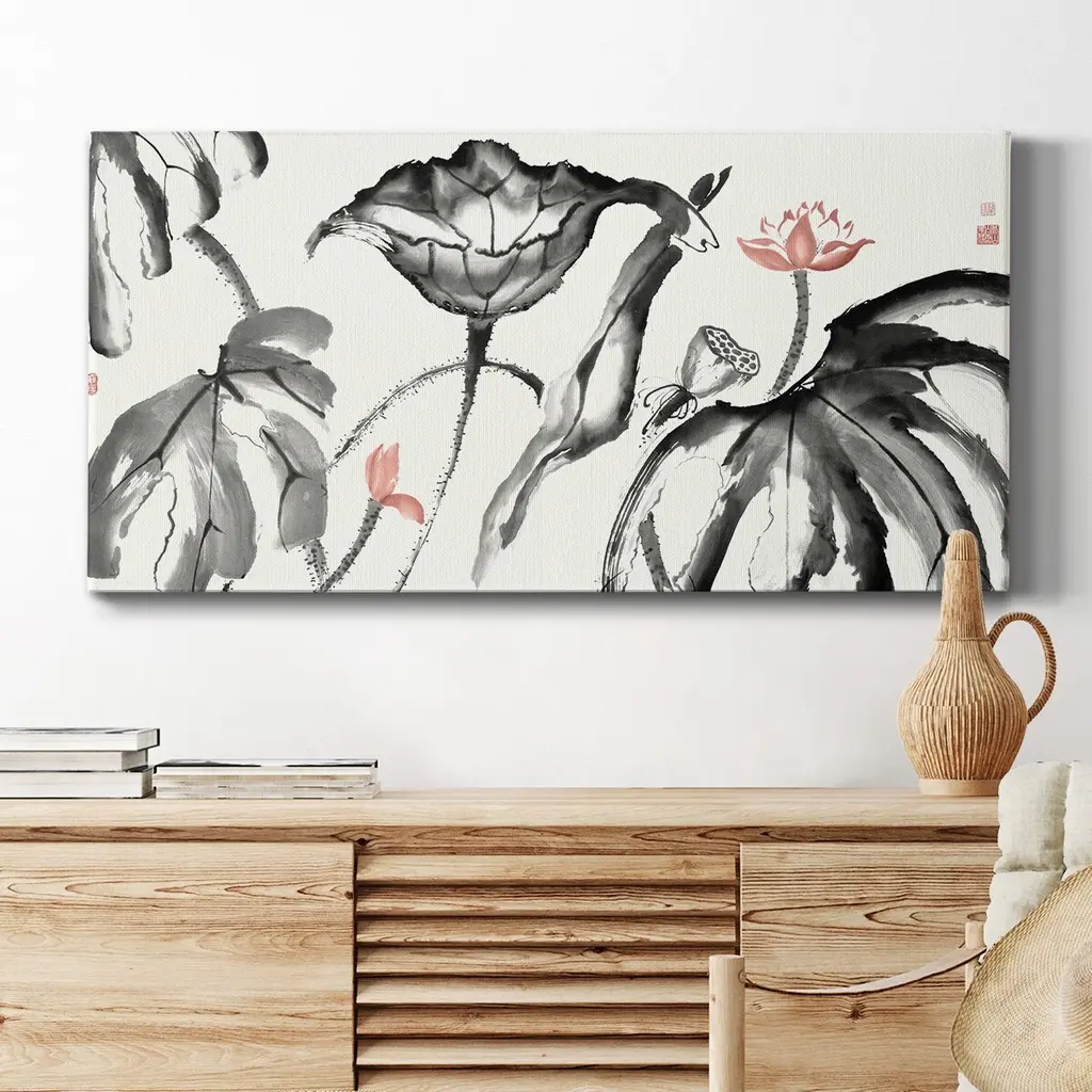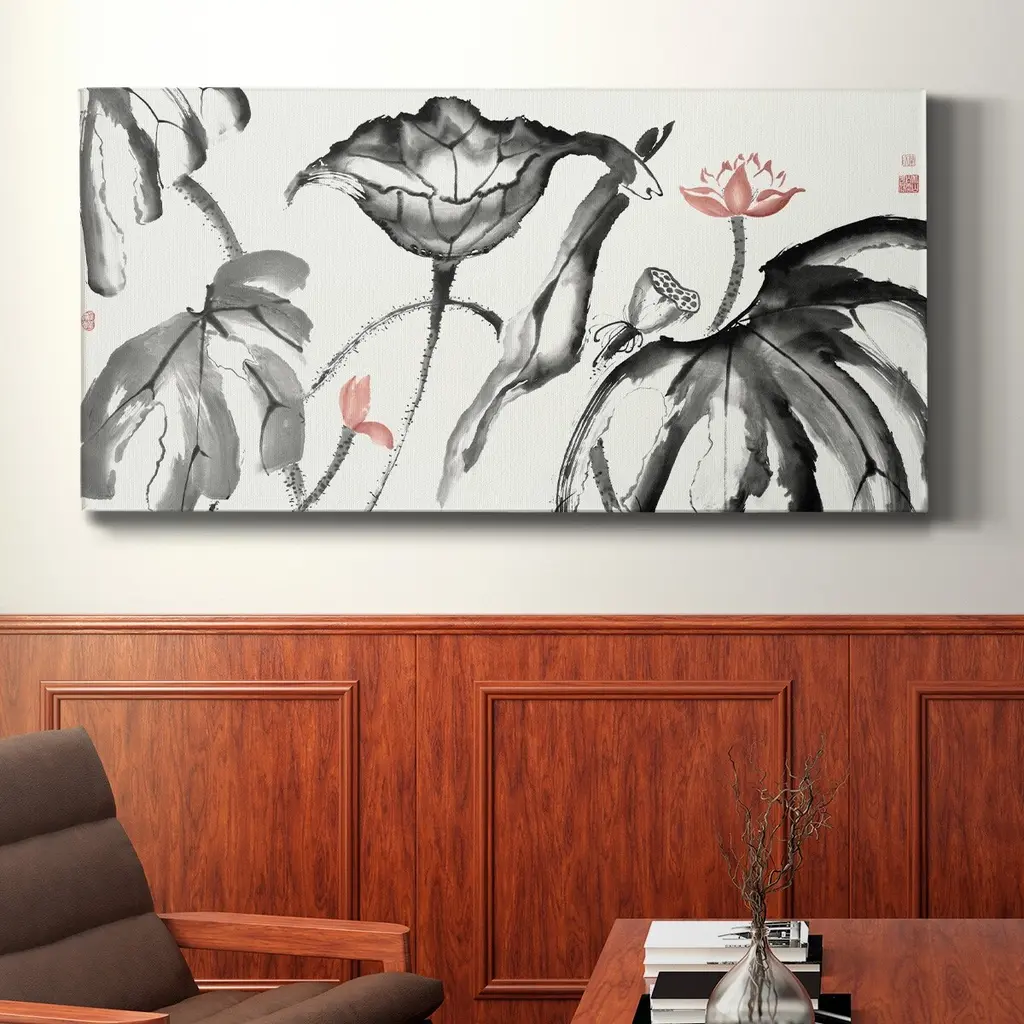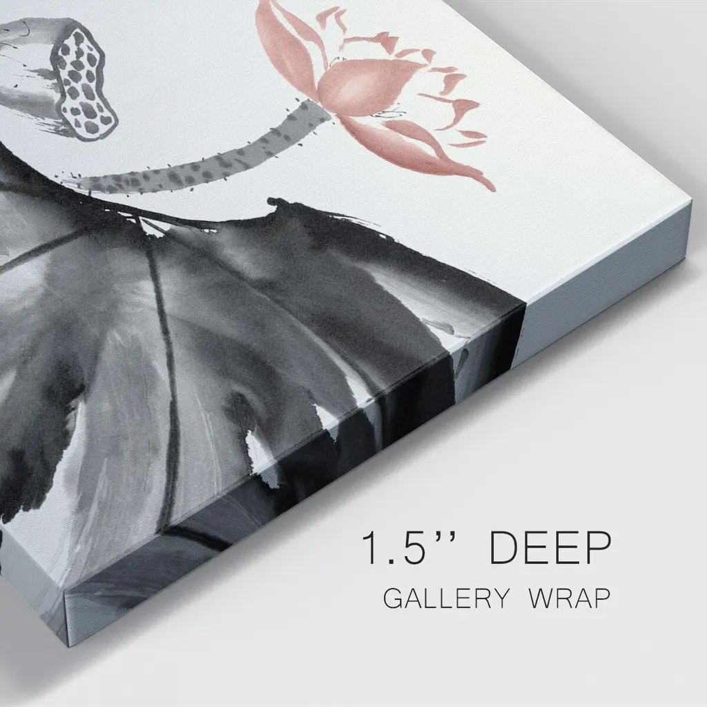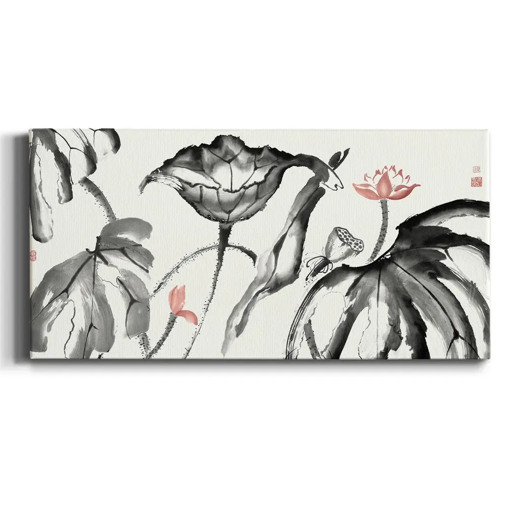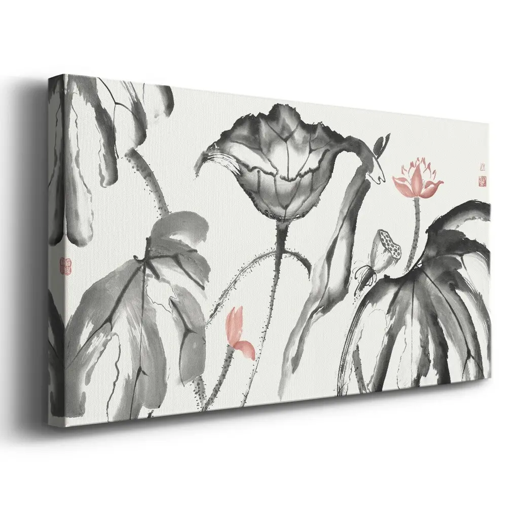 Lotus Study with Coral I- Premium Gallery Wrapped Canvas - Ready to Hang A premium hand stretched gallery wrapped canvas print created to last. Featuring a beveled a solid wood stretcher bar, each piece comes ready to hand 3 SIZES AVAILABLE 8''X16'' - Overall Size 12"X24'' - Overall Size 20''x40'' - Overall Size Each piece is made to order. Built to Last Each piece comes ready to hang Solid wood stretcher Fade and Water resistant Made domestically