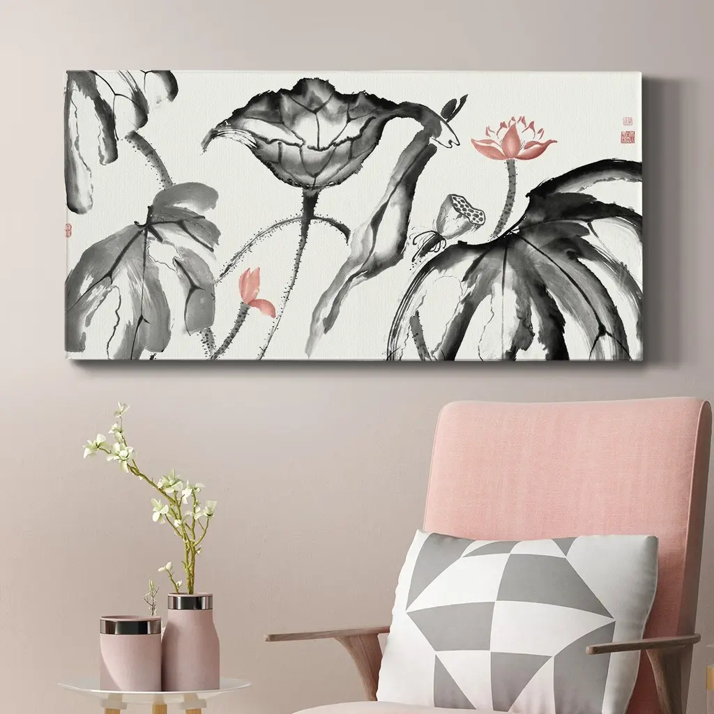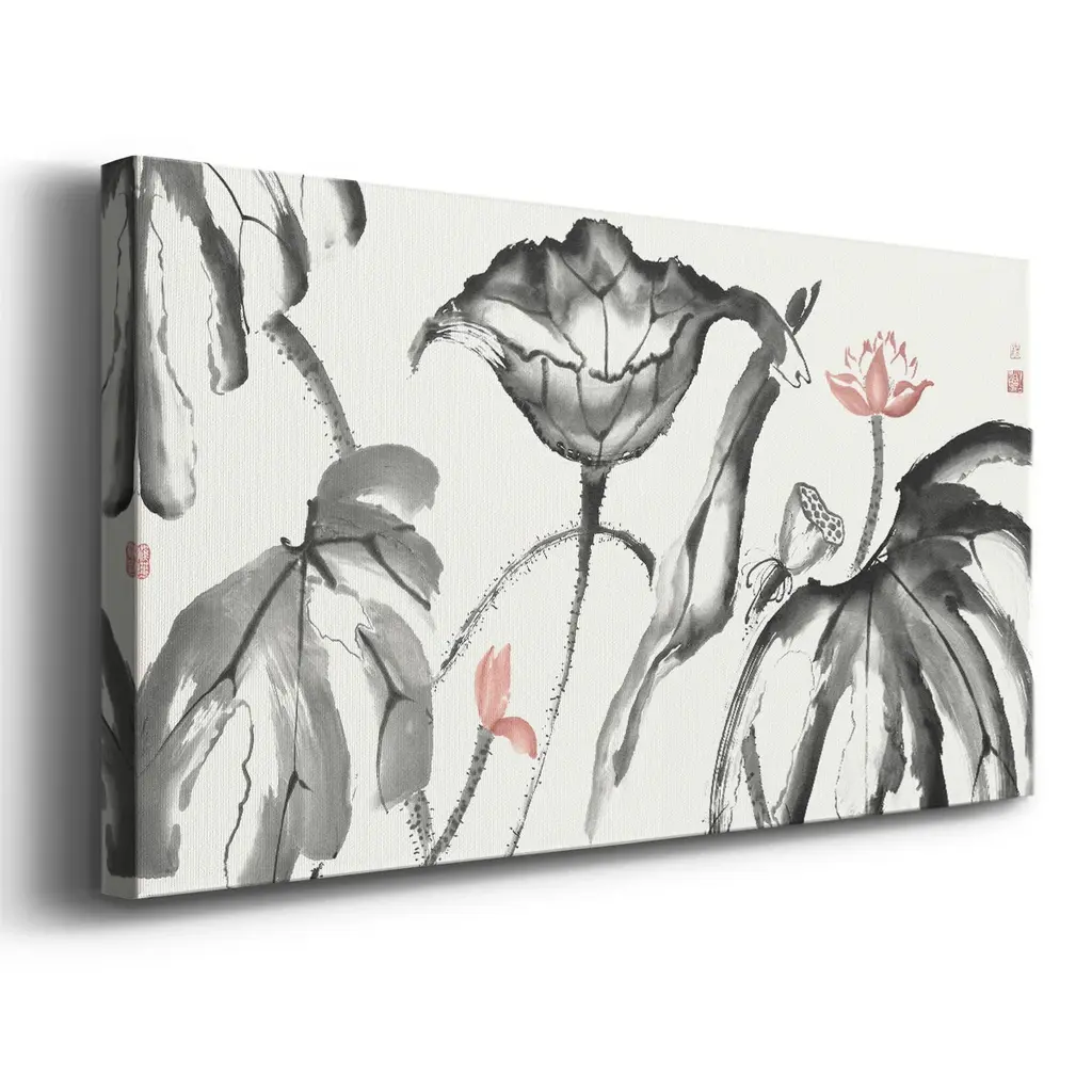 Lotus Study with Coral I- Premium Gallery Wrapped Canvas - Ready to Hang A premium hand stretched gallery wrapped canvas print created to last. Featuring a beveled a solid wood stretcher bar, each piece comes ready to hand 3 SIZES AVAILABLE 8''X16'' - Overall Size 12"X24'' - Overall Size 20''x40'' - Overall Size Each piece is made to order. Built to Last Each piece comes ready to hang Solid wood stretcher Fade and Water resistant Made domestically