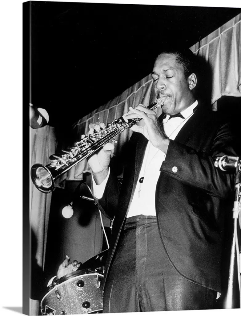 American jazz trumpeter and bandleader Louis 'Satchmo' Armstrong (1900 - 1971), shouts after clarinettist Edmund Hall's solo, on stage during the band's British tour, May 19, 1956. An unidentified bassist stands in the foreground. Hand-selected from the celebrated Getty Images archive, Jonathan's covetable edit captures moments of timeless glamour and classic joie de vivre within the animal, celebrity, fashion and jet set worlds. Each image is printed from scans of the original negative then mounted on aluminum and faced with museum quality Plexiglas. Please allow 3 to 5 weeks for delivery.