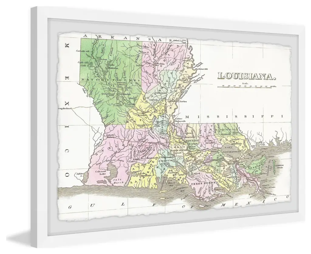"Louisiana Colored Map" Framed Painting Print, 45x30