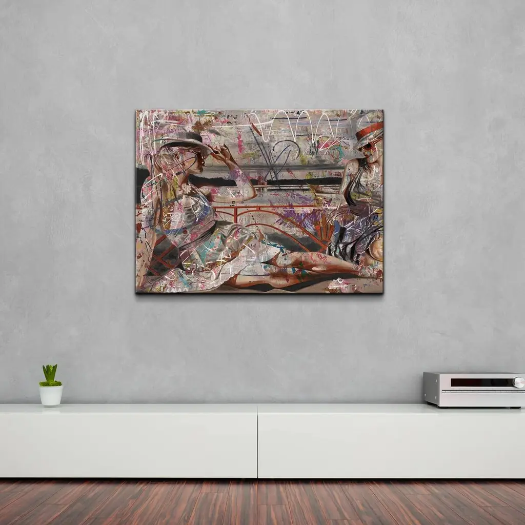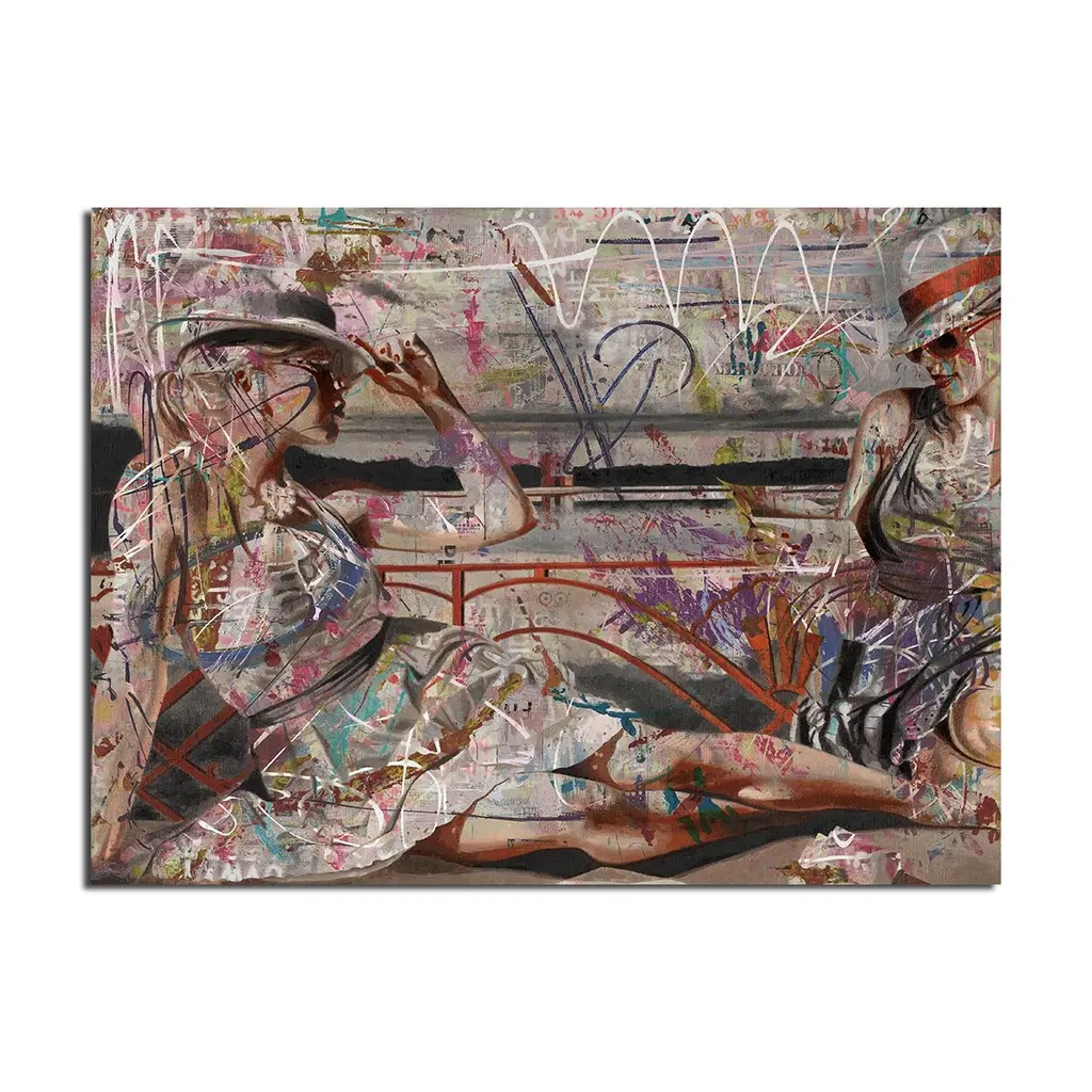 'Lounging Femmes Bx Iii' Graffiti Canvas Wall Art - Grey - 32" W X 24" H