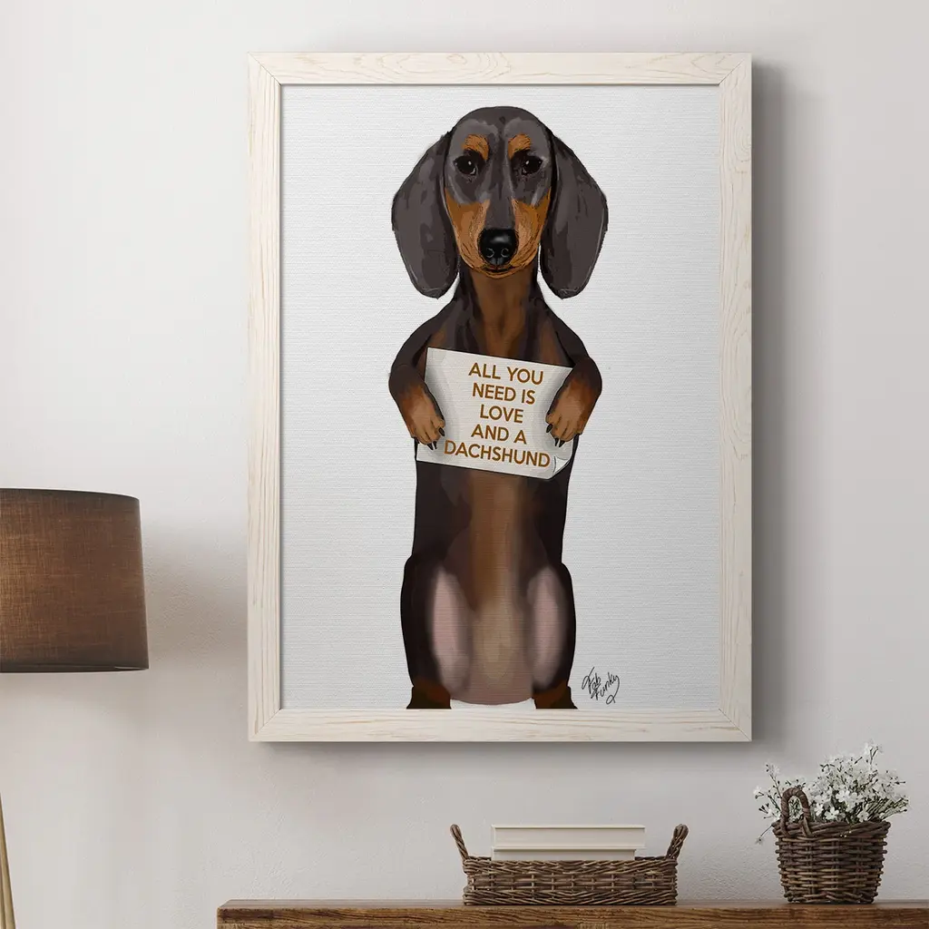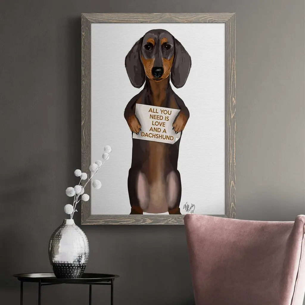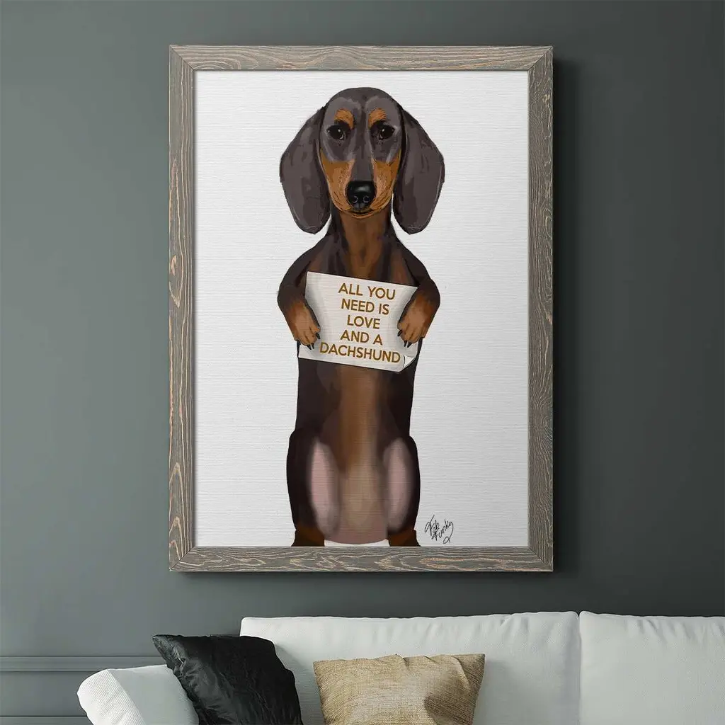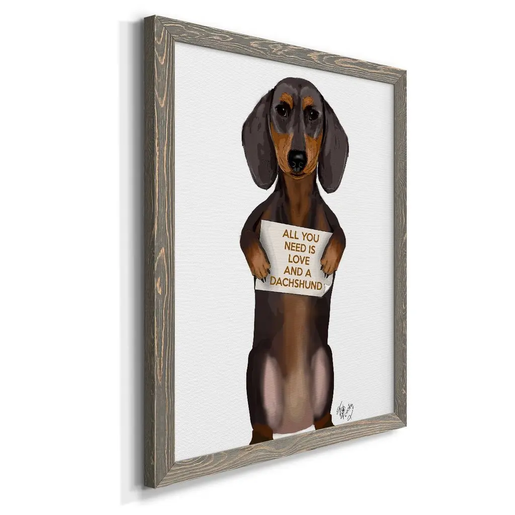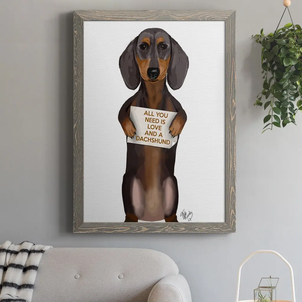 Love And Dachshund-Premium Framed Canvas - Ready To Hang - 31.5x43.5 - Grey