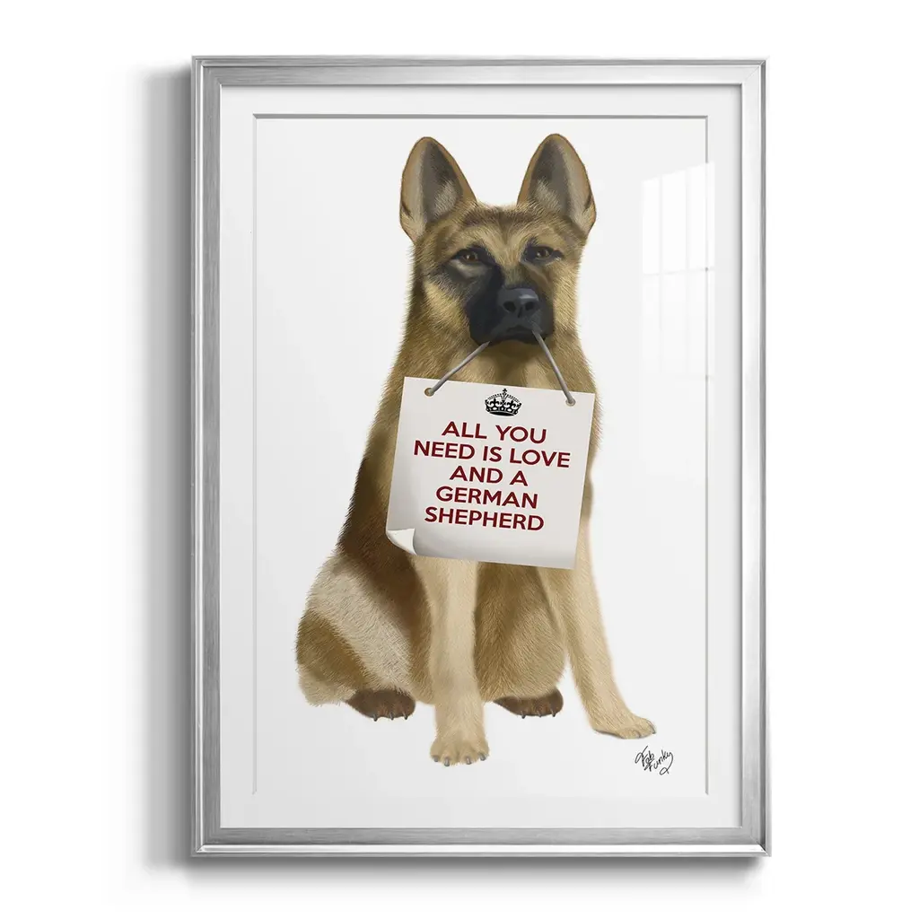 Love And German Shepherd Premium Framed Print - Ready To Hang - 22.5x30.5 - Silver