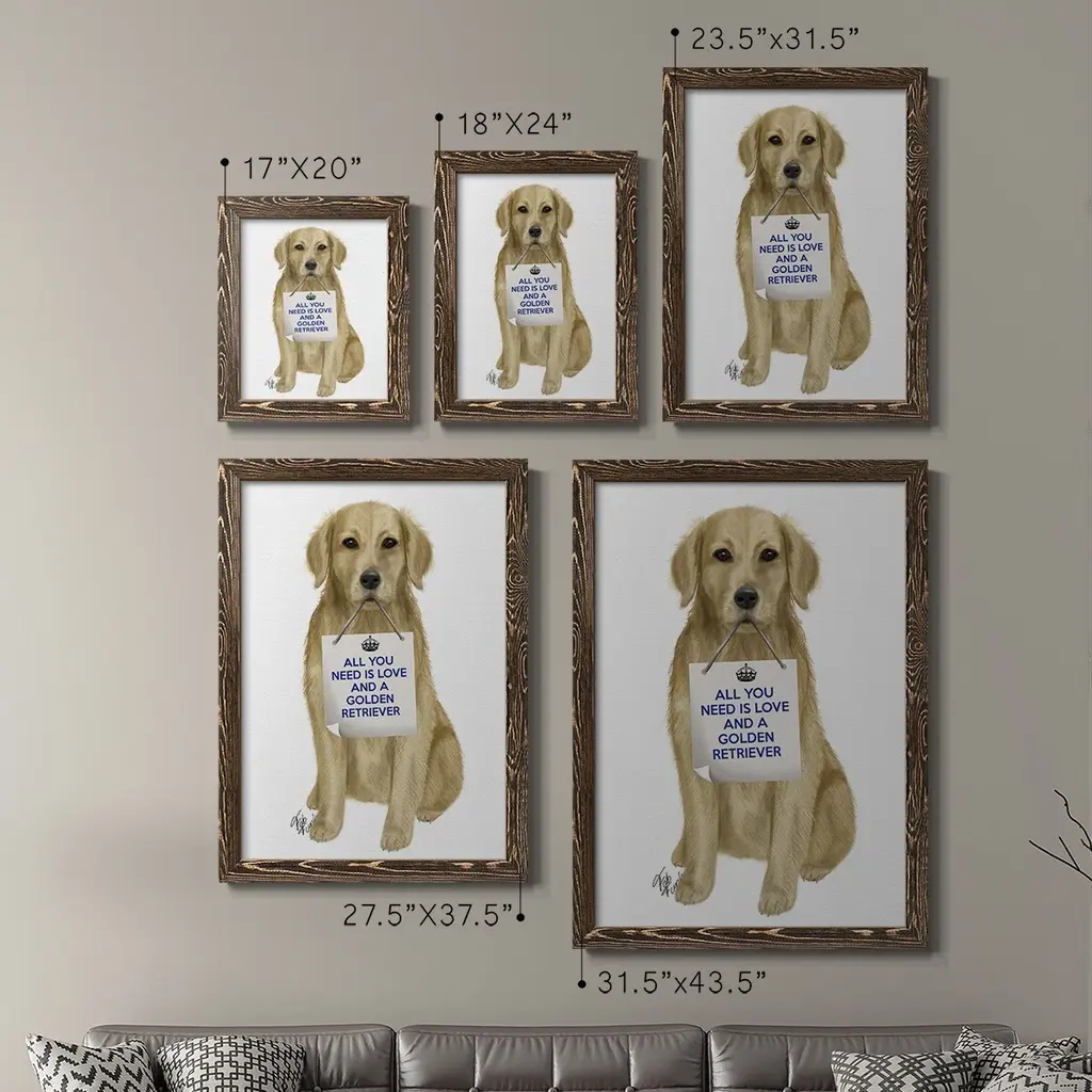 Love And Golden Retriever-Premium Framed Canvas - Ready To Hang - 27.5x37.5 - Grey