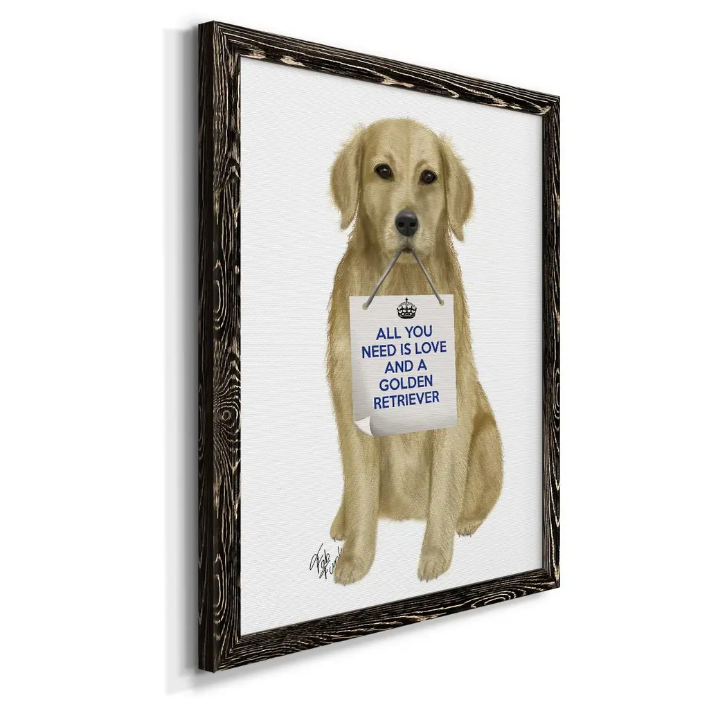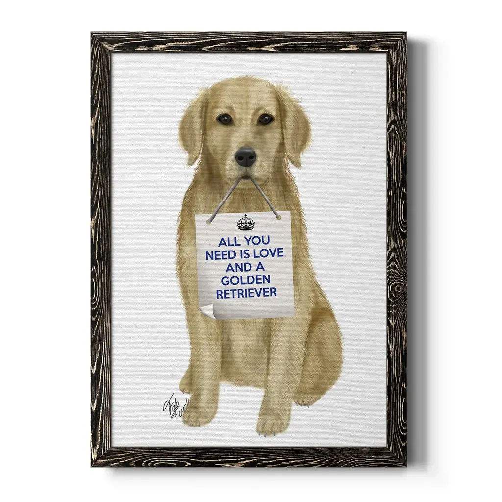 Love And Golden Retriever-Premium Framed Canvas - Ready To Hang - 27.5x37.5 - Walnut