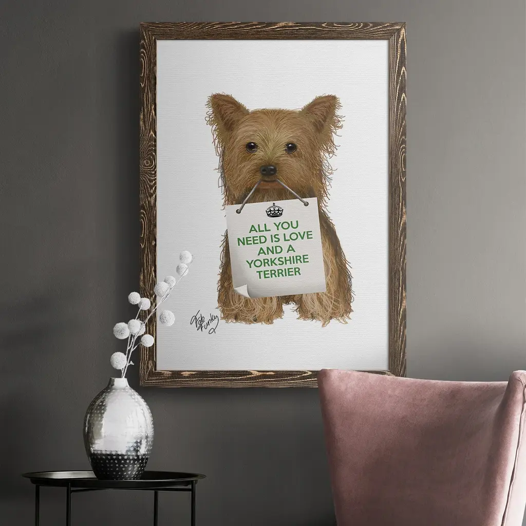 Love And Yorkshire Terrier-Premium Framed Canvas - Ready To Hang - 27.5x37.5 - Walnut