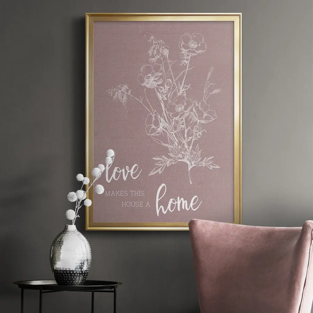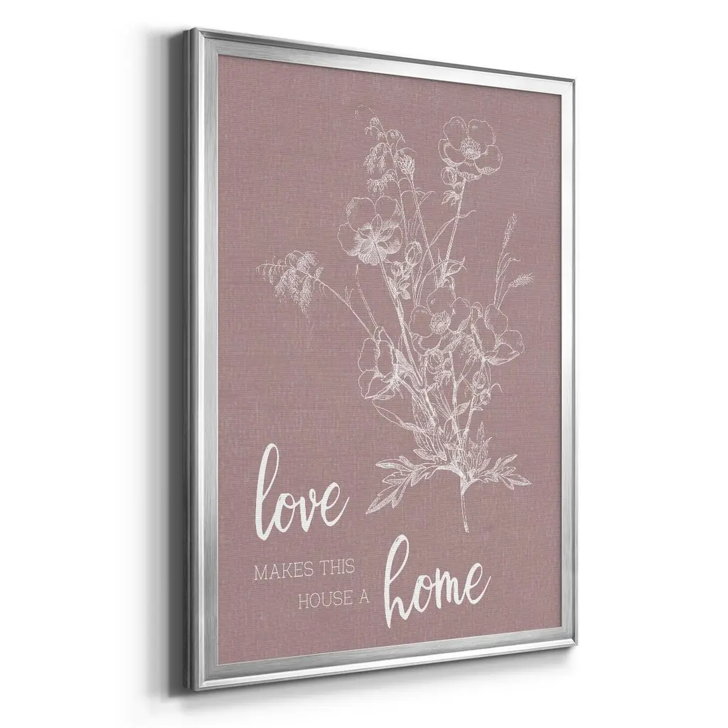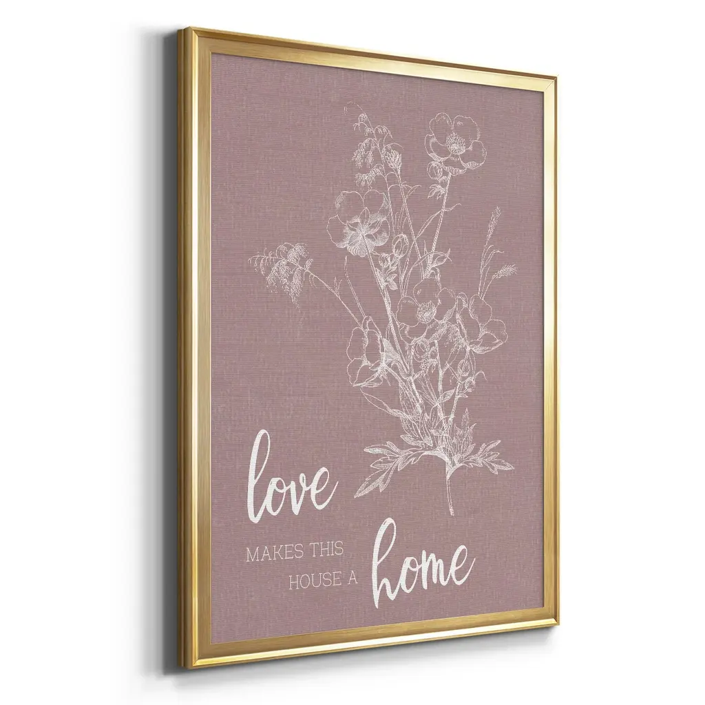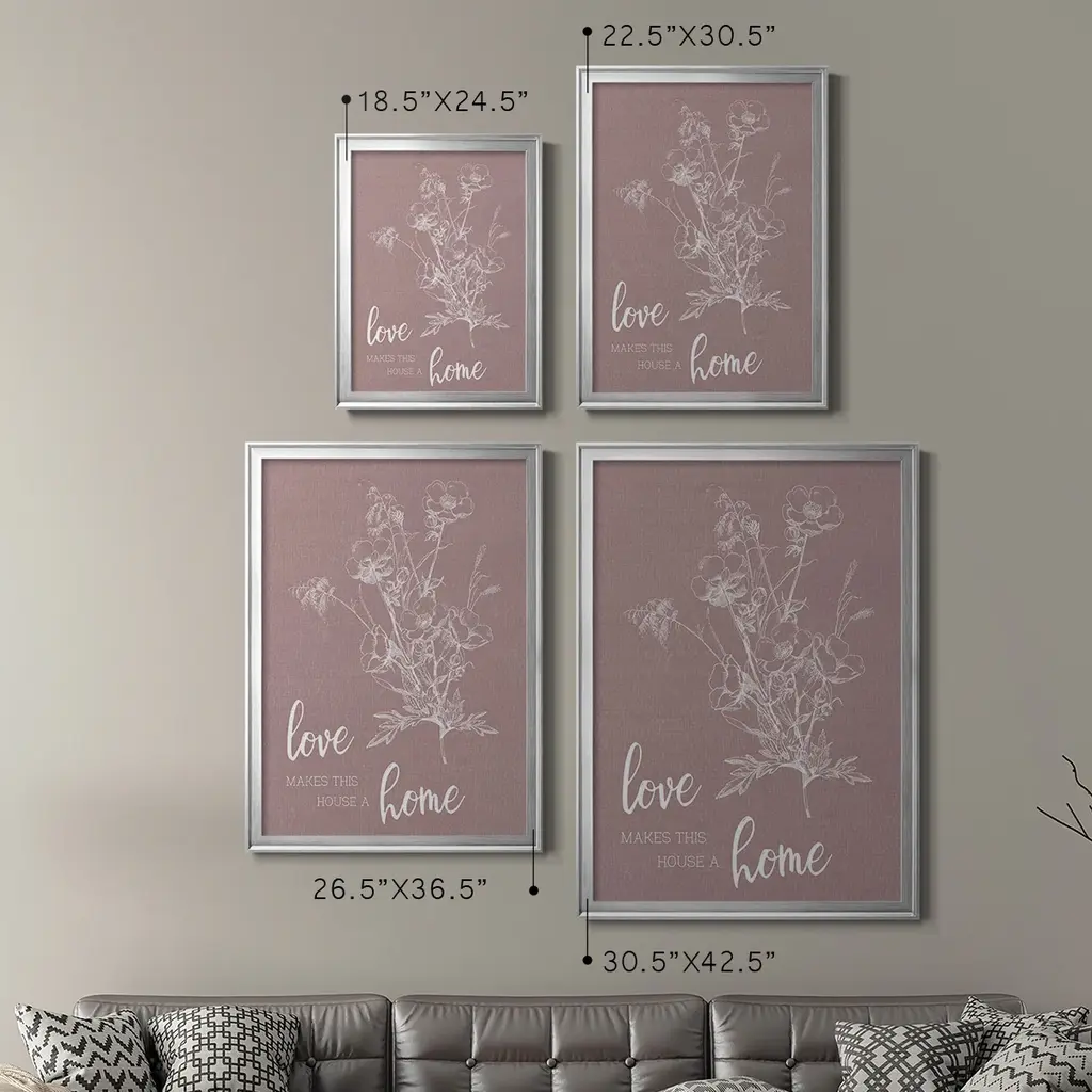 Love Home Premium Framed Print - Ready to Hang A Premium Framed Print created to last. Framed in distressed wood and available in an array of sizes and colors Featuring a beveled a solid wood stretcher bar, each piece comes ready to hand 4 SIZES AVAILABLE 30.5''X42.5'' - Overall Size 26.5'X36.5'' - Overall Size 22.5''x30.5'' - Overall Size 18.5''x24.5'' - Overall Size Each piece is made to order. Each piece comes with hanging hardware. Made in the USA Ready to Hang