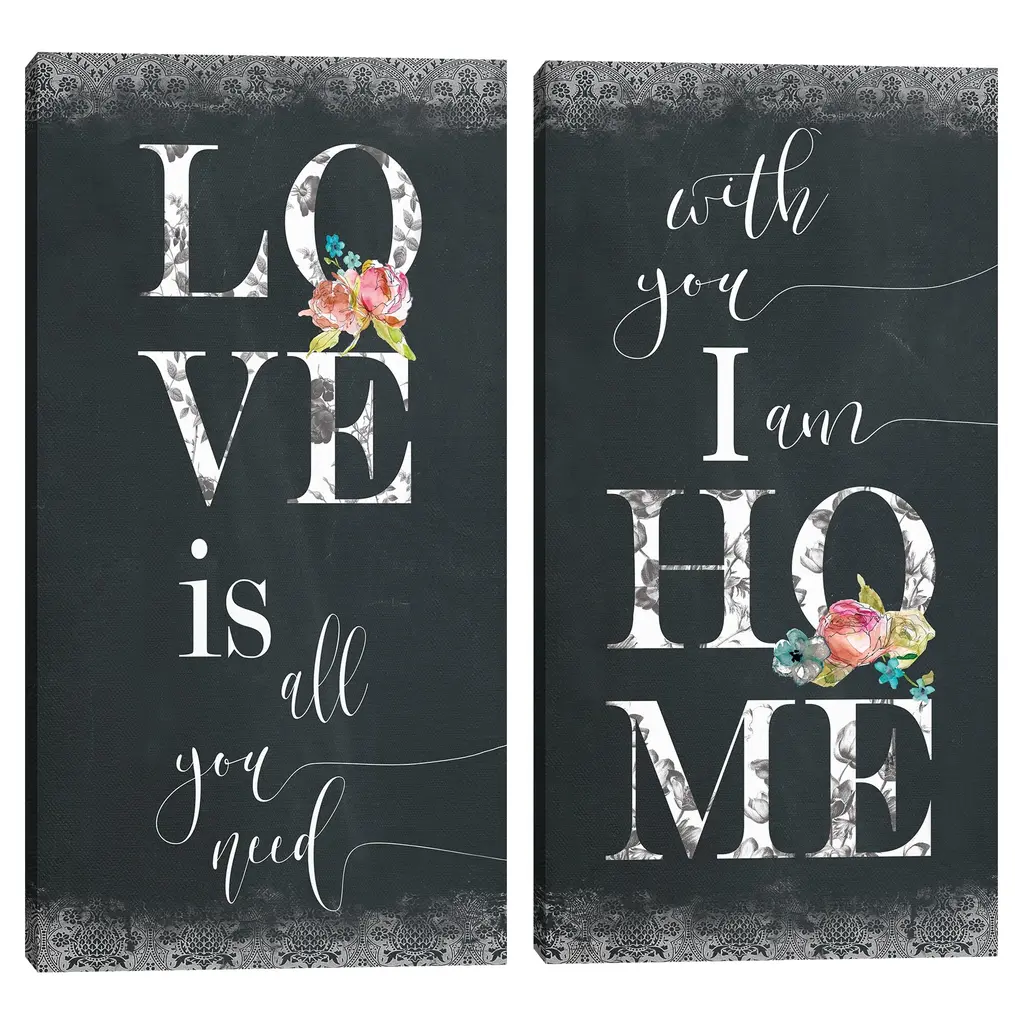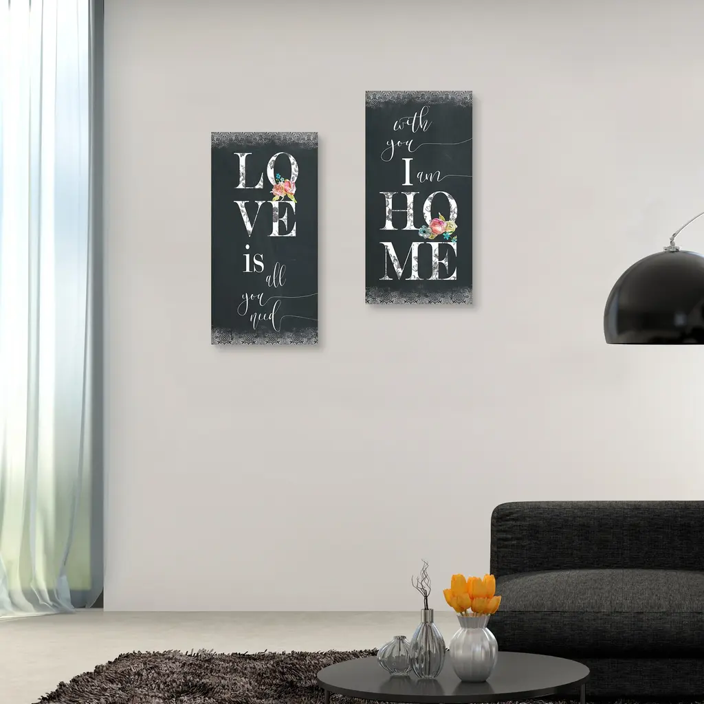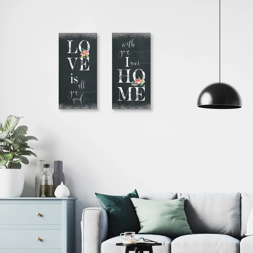 Love Is All You Need & With You I Am Home Canvas Art Prints - 12x24x2