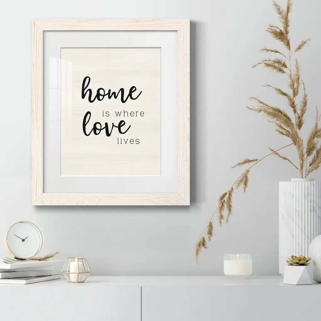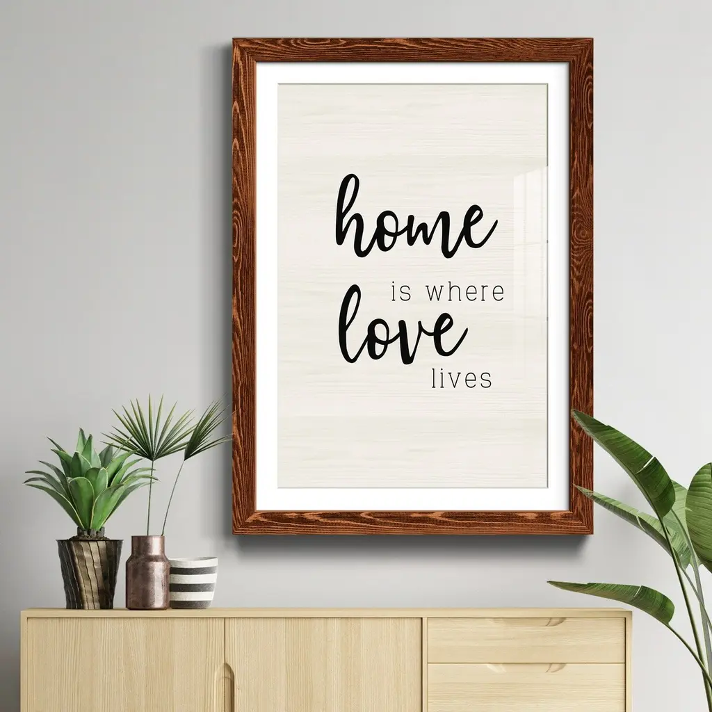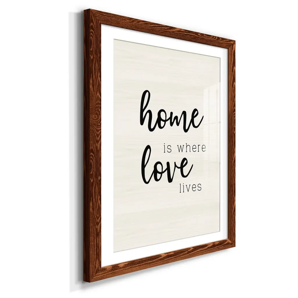 Love Lives-Premium Framed Print - Ready to Hang Framed in distressed wood and available in an array of sizes and colors Each piece is joined and assembled by hand and comes ready to hang 2 INCH BEVELED MATTE BOARD PLEXIGLASS COVERING READY TO HANG MADE IN THE USA SOLID WOOD FRAME MADE IN USA FADE RESISTANT GICLEE PRINTING on Canvas or Paper