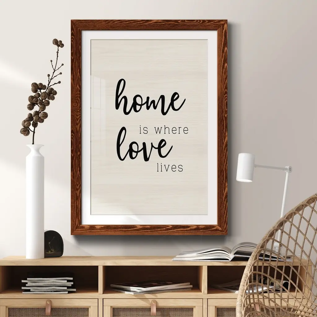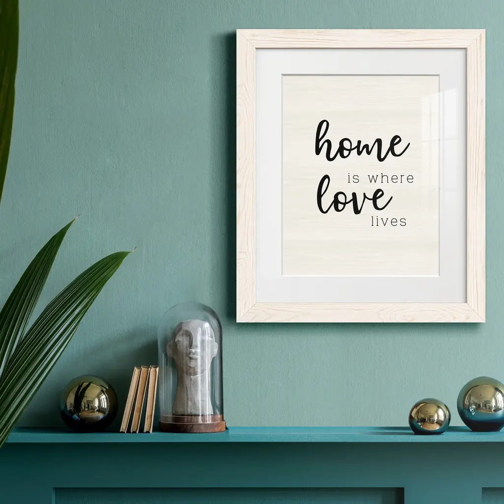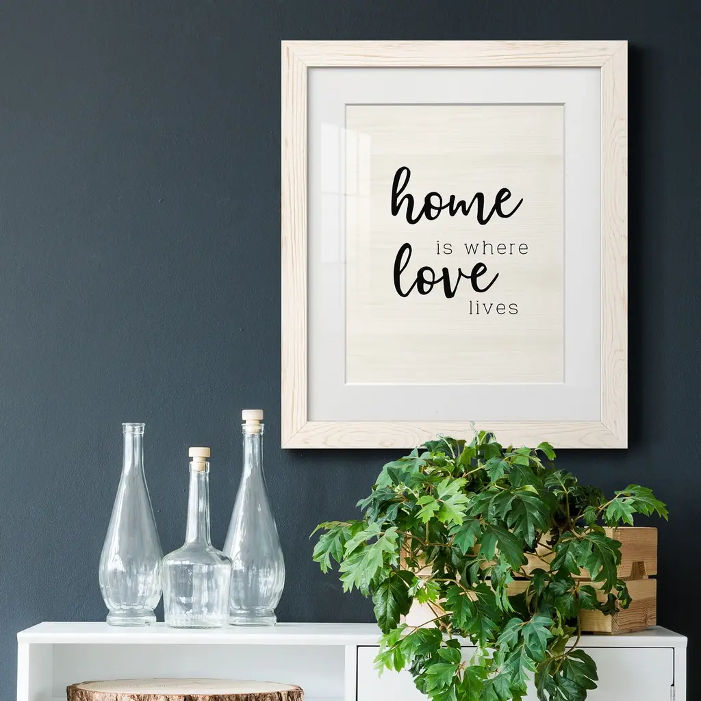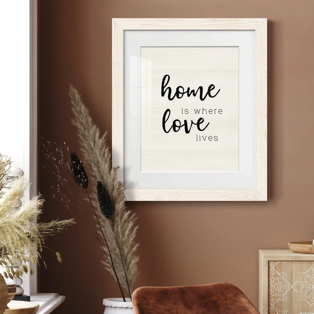 Love Lives-Premium Framed Print - Ready to Hang Framed in distressed wood and available in an array of sizes and colors Each piece is joined and assembled by hand and comes ready to hang 2 INCH BEVELED MATTE BOARD PLEXIGLASS COVERING READY TO HANG MADE IN THE USA SOLID WOOD FRAME MADE IN USA FADE RESISTANT GICLEE PRINTING on Canvas or Paper