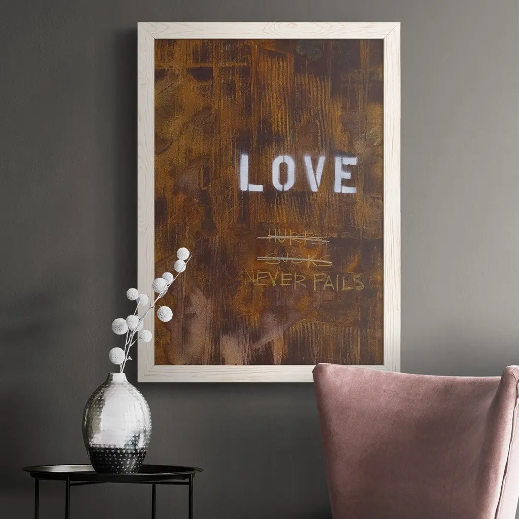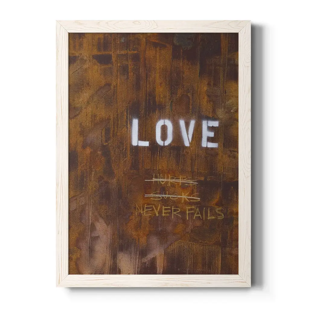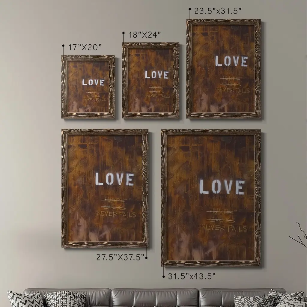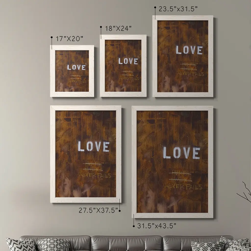 Love Never Fails I-Premium Framed Canvas - Ready To Hang - 27.5x37.5 - Grey