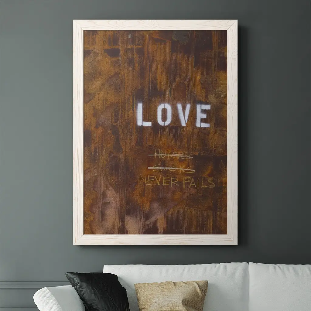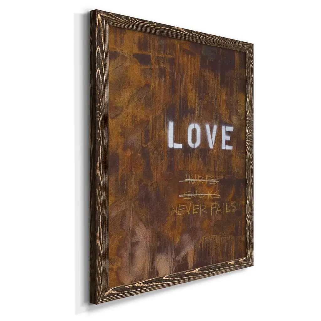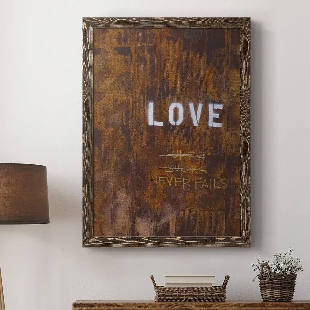 Love Never Fails I-Premium Framed Canvas - Ready To Hang - 27.5x37.5 - Walnut