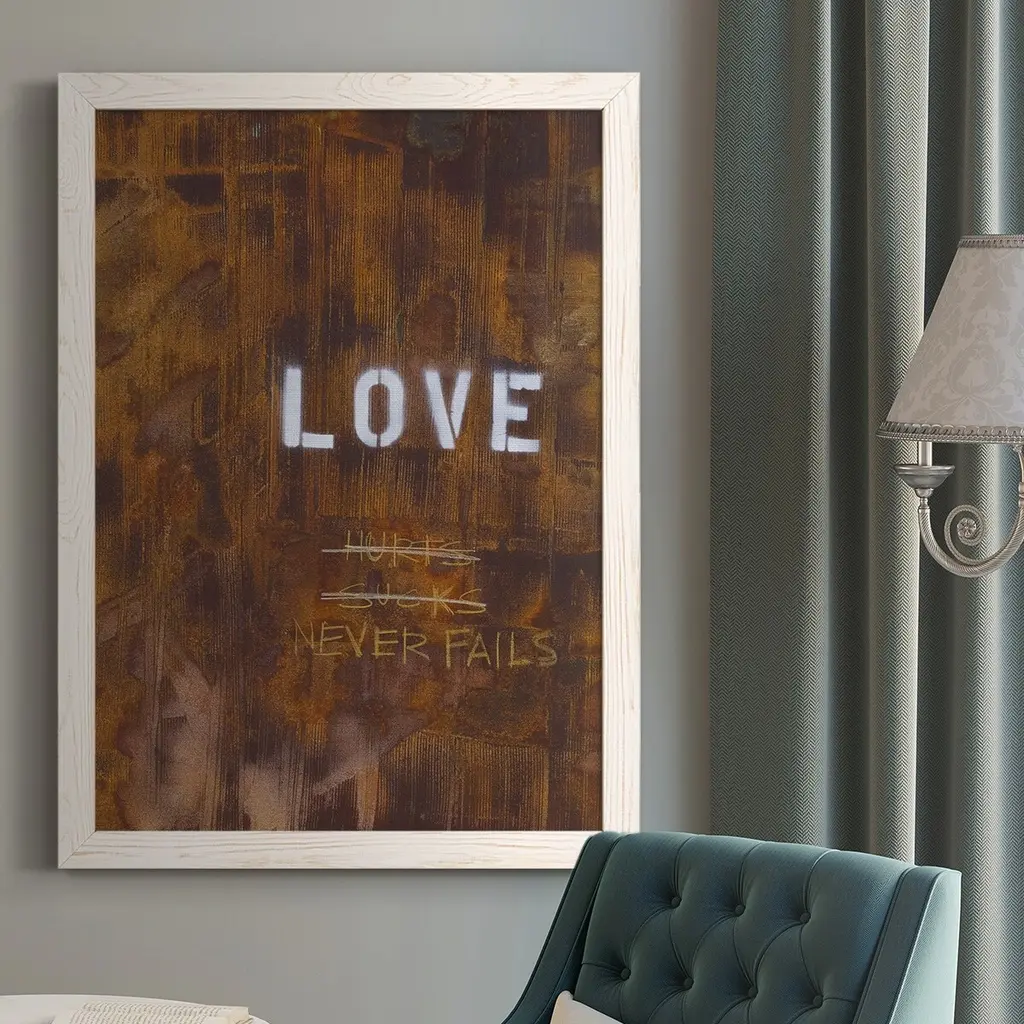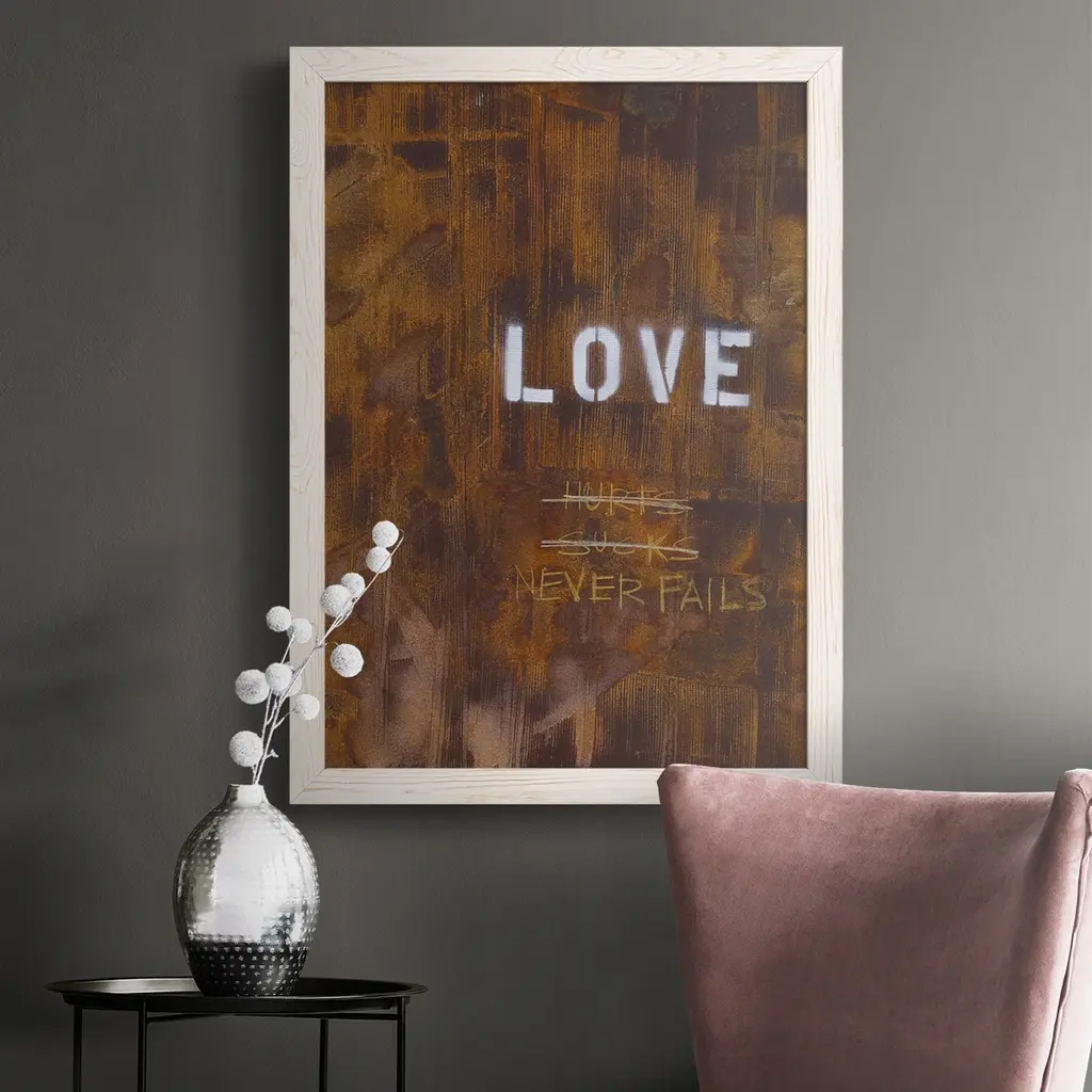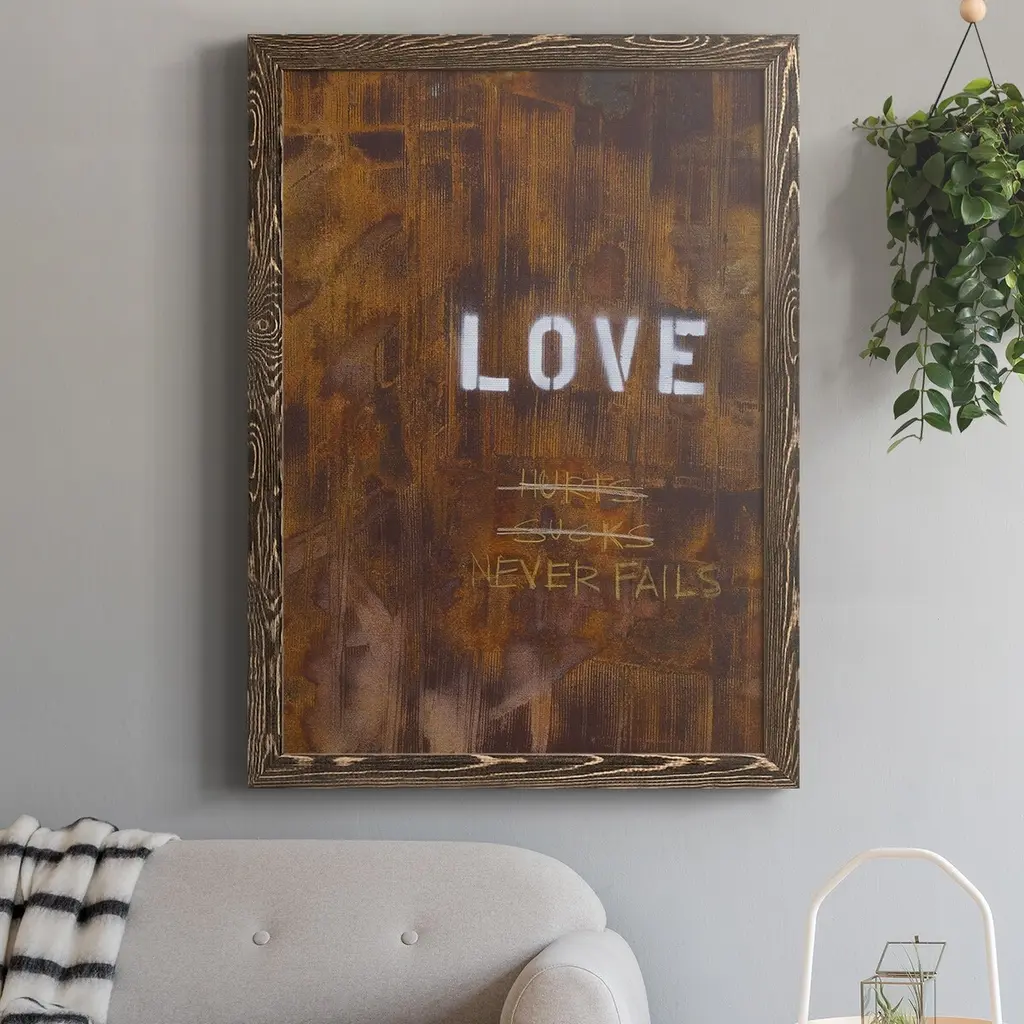 Love Never Fails I-Premium Framed Canvas - Ready To Hang - 27.5x37.5 - Walnut