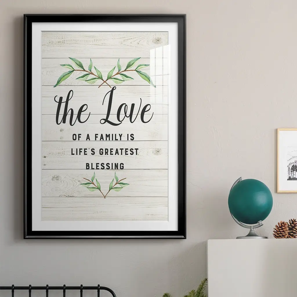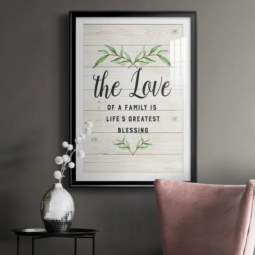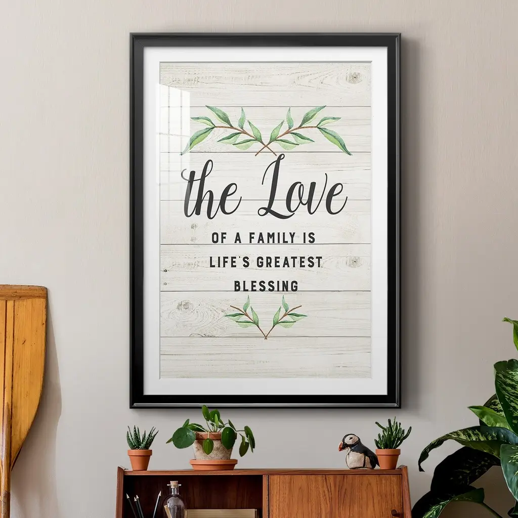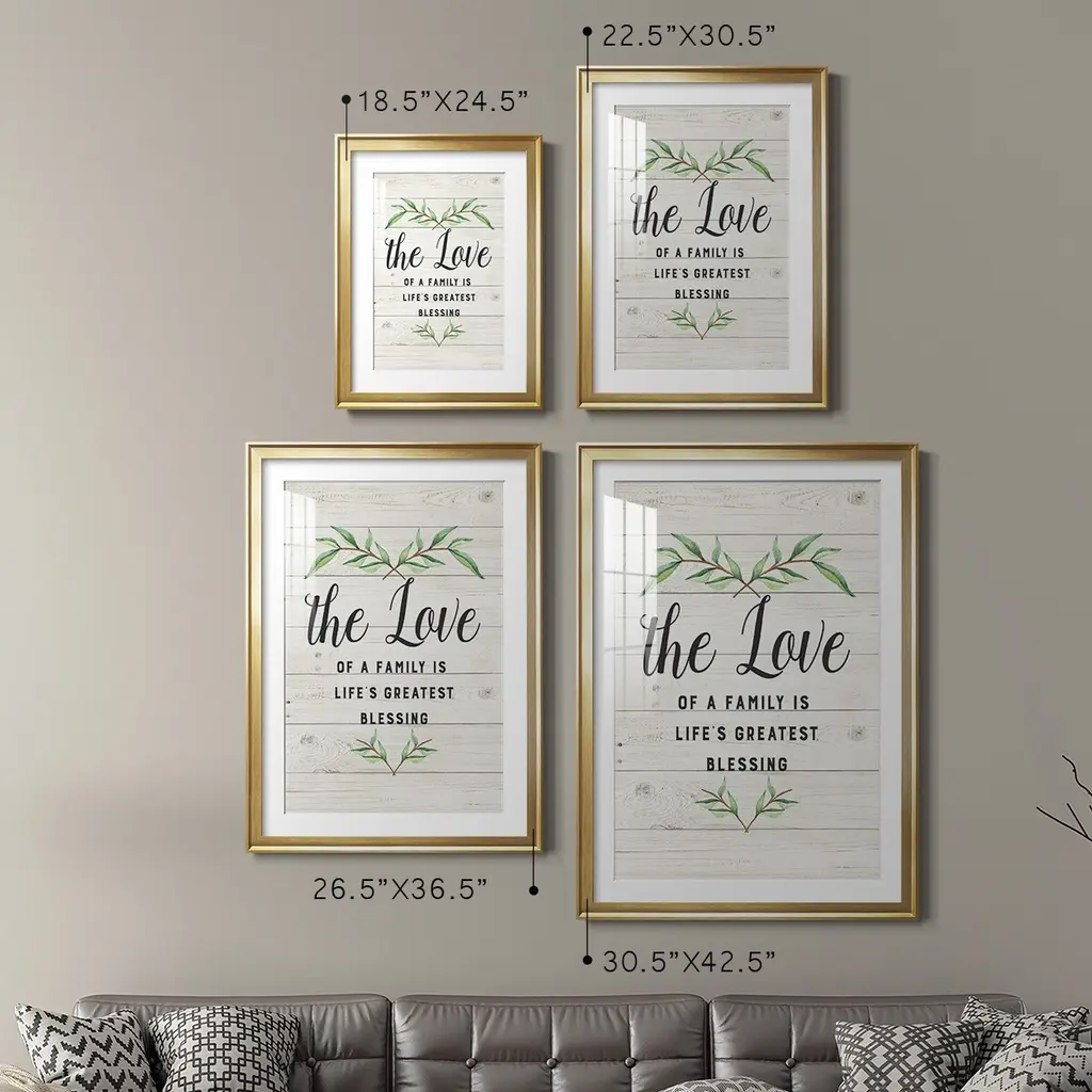 Love of a Family Premium Framed Print - Ready to Hang A Premium Framed Print created to last. Framed in distressed wood and available in an array of sizes and colors Featuring a beveled a solid wood stretcher bar, each piece comes ready to hand 4 SIZES AVAILABLE 30.5''X42.5'' - Overall Size 26.5'X36.5'' - Overall Size 22.5''x30.5'' - Overall Size 18.5''x24.5'' - Overall Size Each piece is made to order. Each piece comes with hanging hardware. Made in the USA Ready to Hang Giclee Paper Print Acrylic Glass Beveled Matt Board