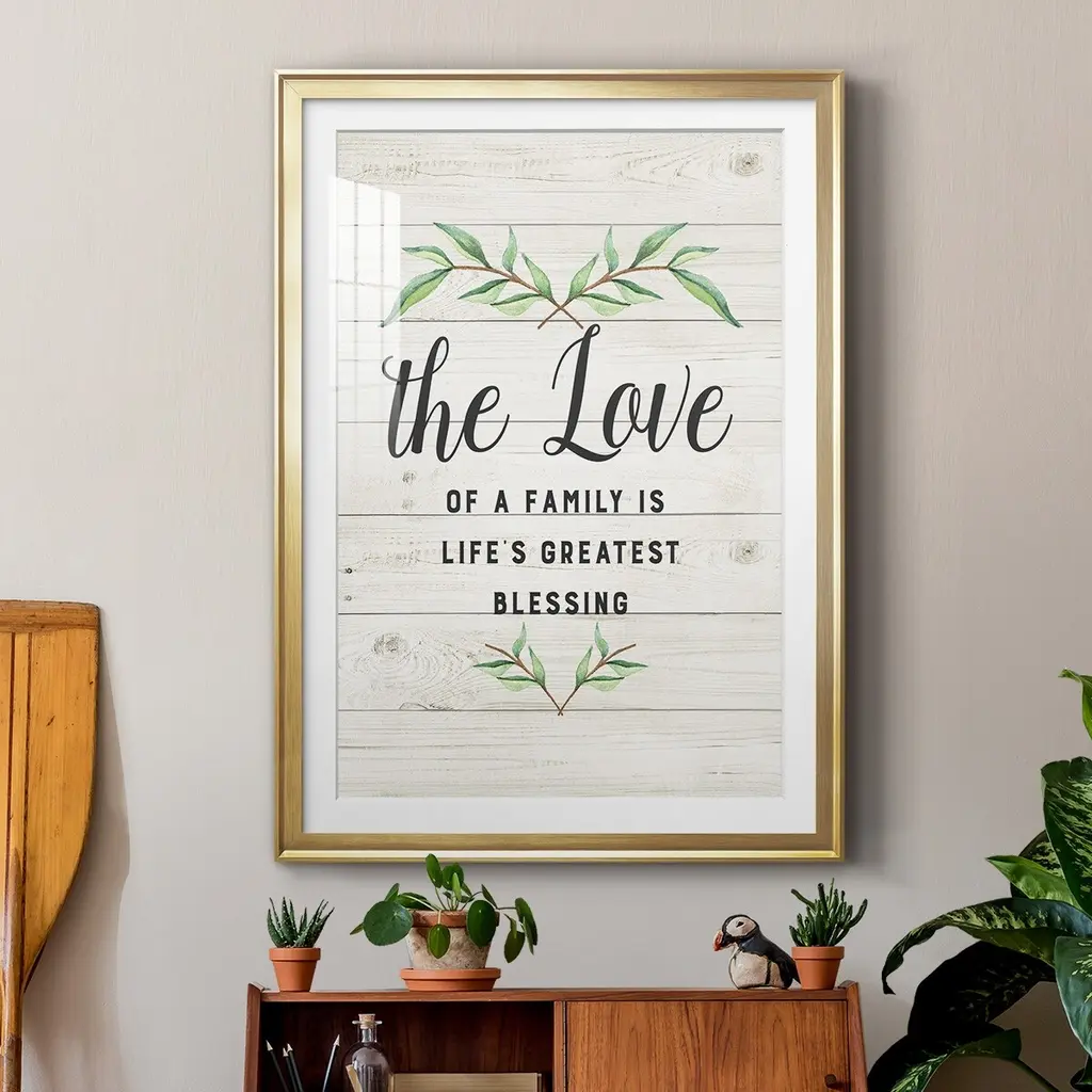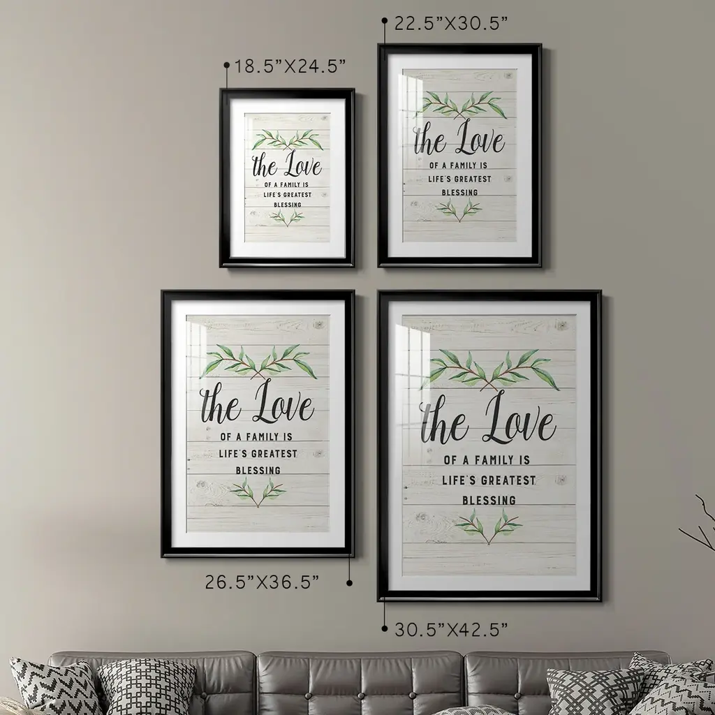 Love of a Family Premium Framed Print - Ready to Hang A Premium Framed Print created to last. Framed in distressed wood and available in an array of sizes and colors Featuring a beveled a solid wood stretcher bar, each piece comes ready to hand 4 SIZES AVAILABLE 30.5''X42.5'' - Overall Size 26.5'X36.5'' - Overall Size 22.5''x30.5'' - Overall Size 18.5''x24.5'' - Overall Size Each piece is made to order. Each piece comes with hanging hardware. Made in the USA Ready to Hang Giclee Paper Print Acrylic Glass Beveled Matt Board