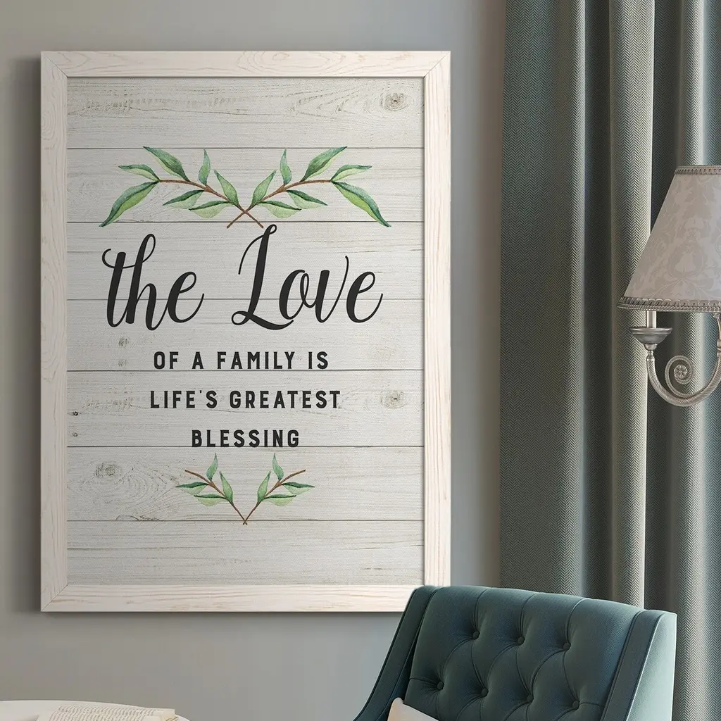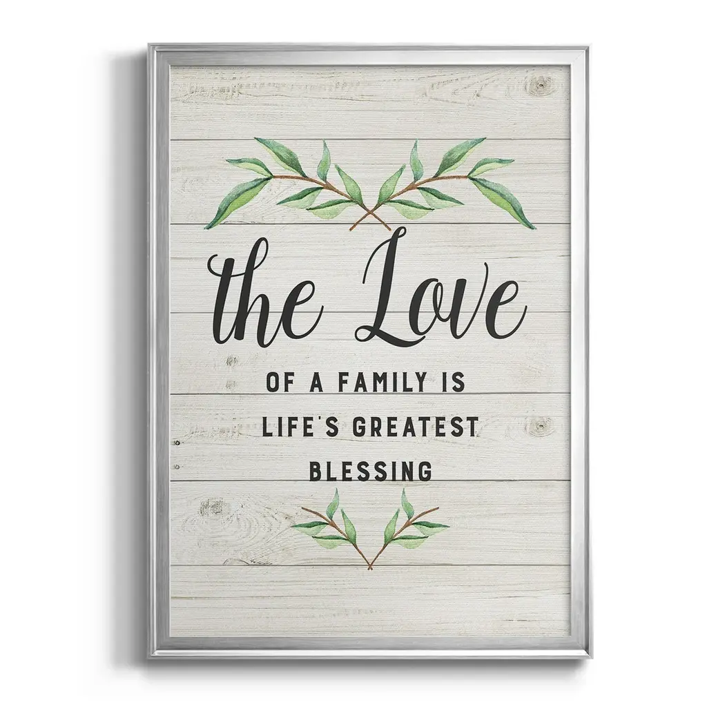 Love of a Family Premium Framed Print - Ready to Hang A Premium Framed Print created to last. Framed in distressed wood and available in an array of sizes and colors Featuring a beveled a solid wood stretcher bar, each piece comes ready to hand 4 SIZES AVAILABLE 30.5''X42.5'' - Overall Size 26.5'X36.5'' - Overall Size 22.5''x30.5'' - Overall Size 18.5''x24.5'' - Overall Size Each piece is made to order. Each piece comes with hanging hardware. Made in the USA Ready to Hang