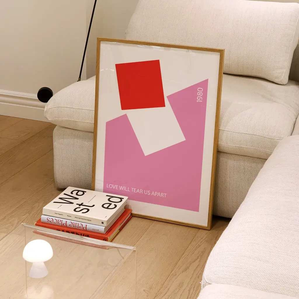 Inspired by the sounds of Joy Division in the 80s, this music print features simplistic colour block design with song lyrics from the iconic "Love Will Tear Us Apart". The perfect mid century inspired wall art, pair with plants and teak furniture. Available in two coloursSold without frameGiclée printed on Munken pure smooth cream paper which is certified by the Rainforest Alliance Program for FSC® Standards.