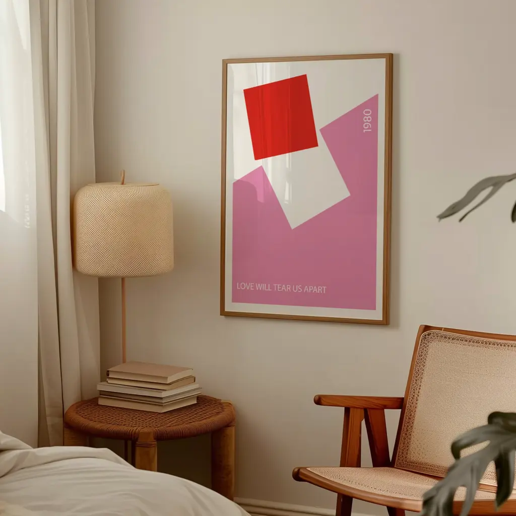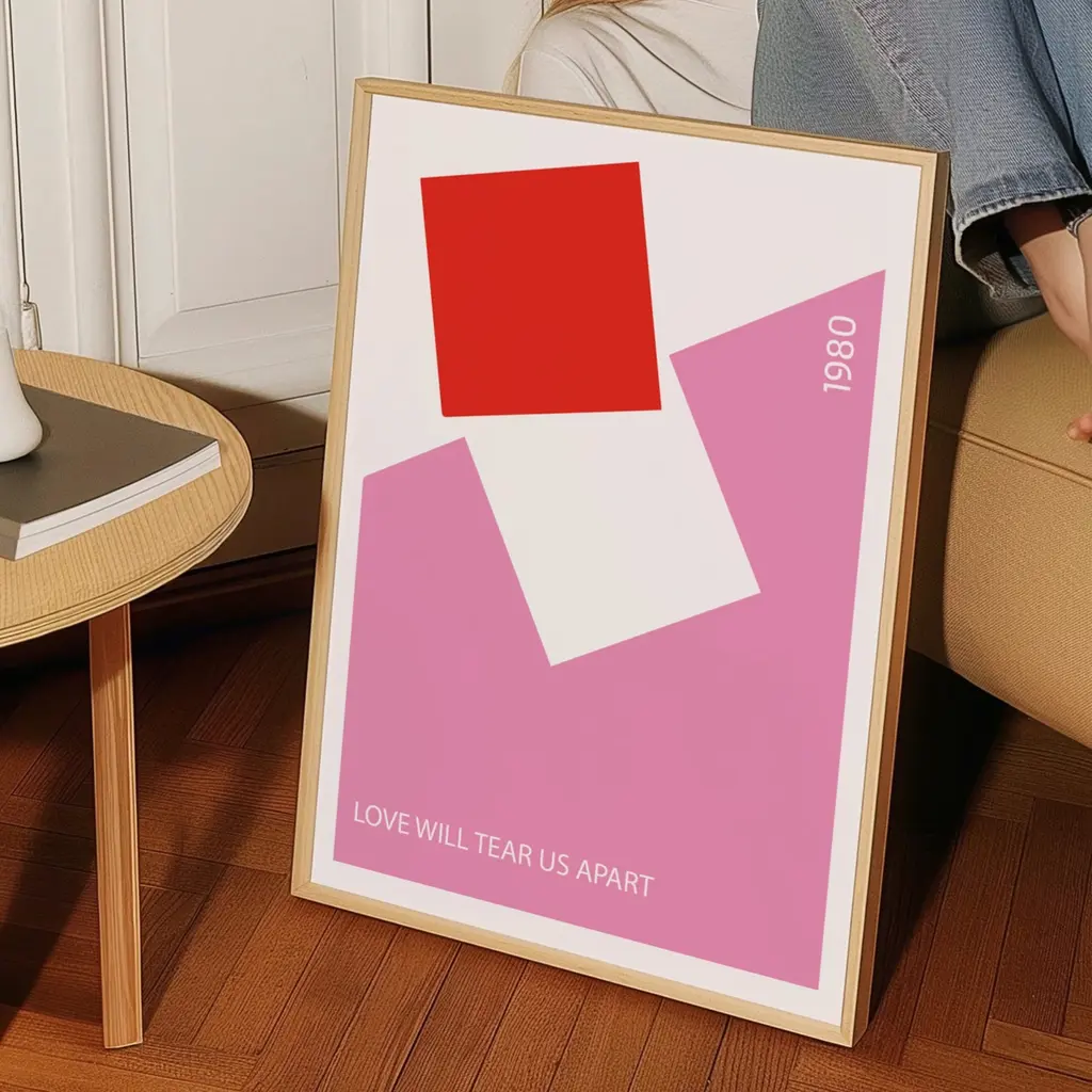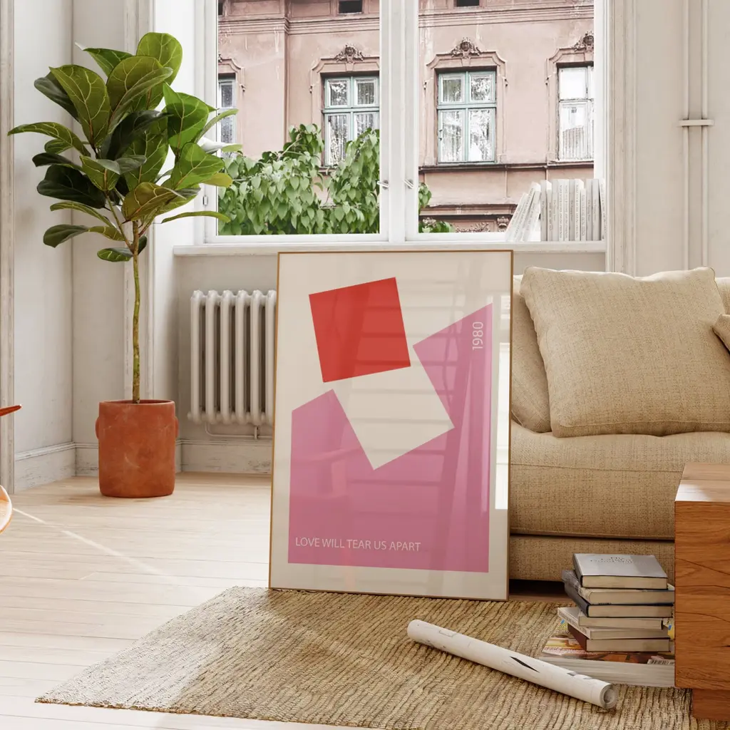 Love Will Tear Us Apart Song Lyric Retro Art Print Pink & Red