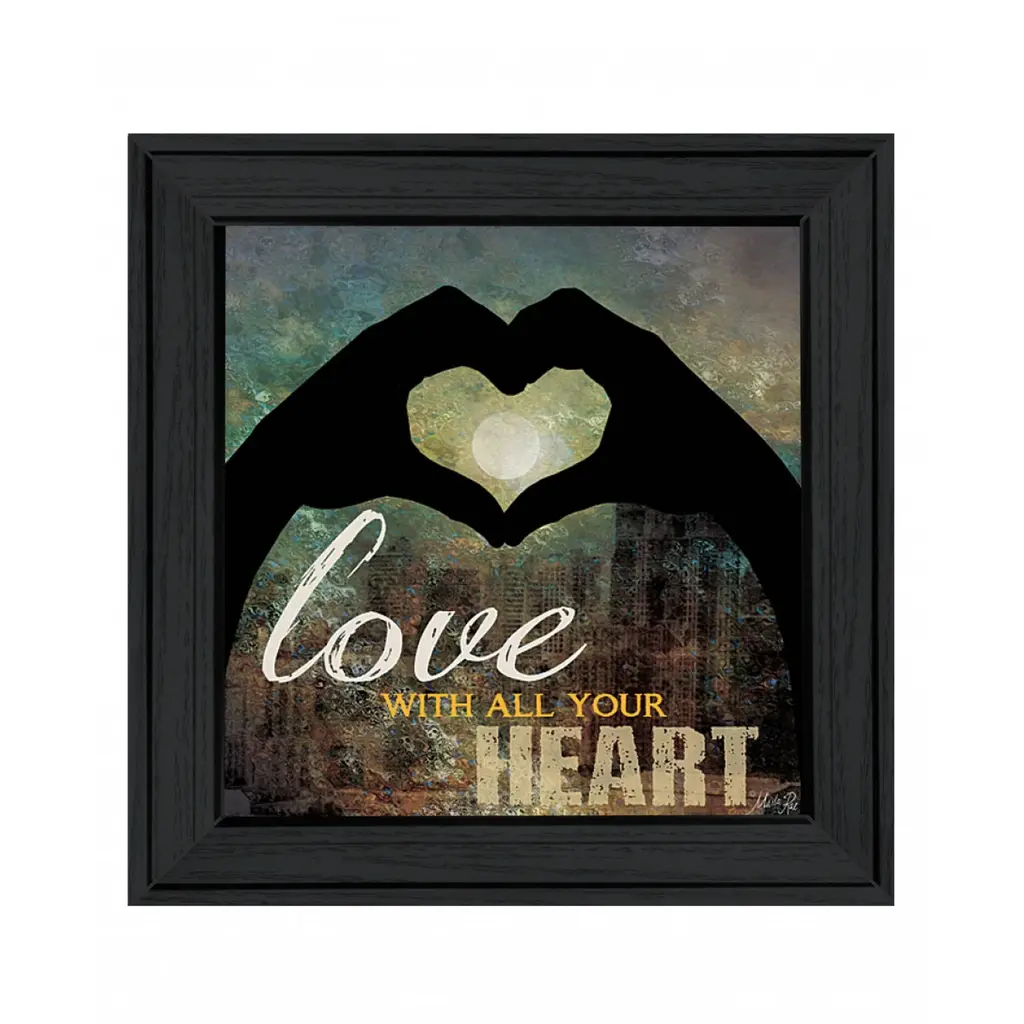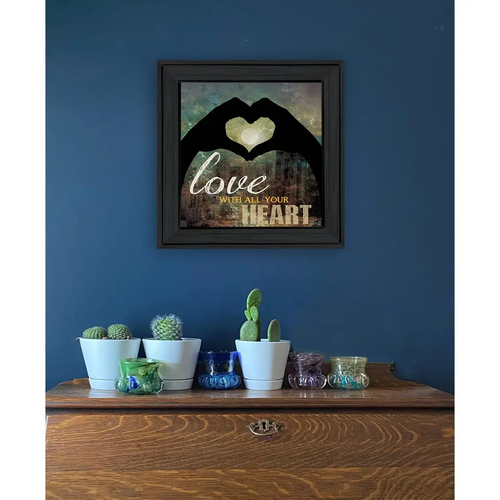 Unique and decorative, this love with all your heart 4 black framed print wall art will leave a lasting impression. This print is a visual artistic expression that allows you to decorate your space in style. Reproduced for you on wood, this hanging decorative accent will be a trendy and fashionable way to dress your walls in a rustic and modern farmhouse vibe. Adding this hanging wall art to your space to make your room feel more finished and attractive. Instantly liven up your space with this art that brings color and dimension to your walls. 15" H x 15" W x 1" D