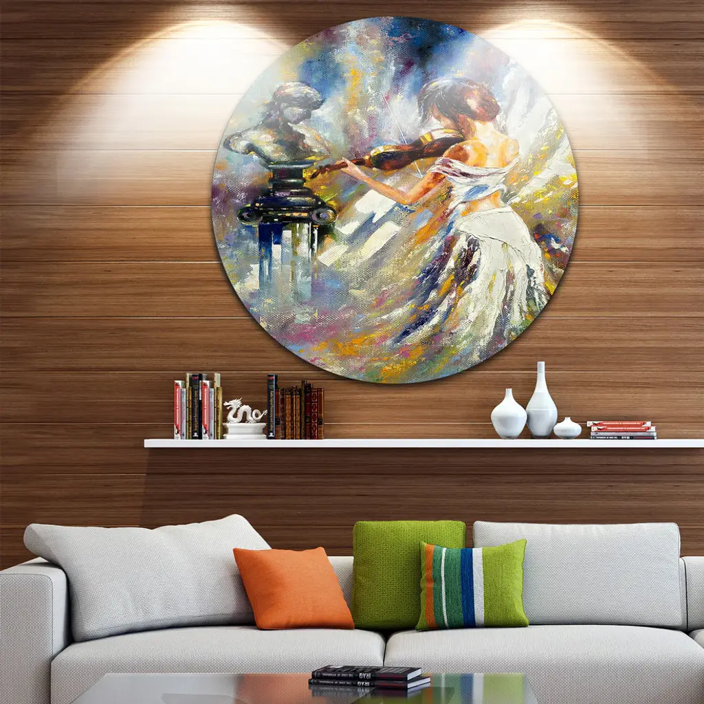 Bring Contemporary Abstraction to your home with this large Circle Metal wall art. This Love with Endless Music Metal Artwork makes it the focal point of any room or office. - White Gloss Coating ensures colors are extra vibrant with light reflection.- Aluminum grade Sheet Metal with 1 inch mounting frame on the back giving the illusion that the artwork is floating on the wall..- Mounting Brackets are included along with instructions.- High Quality Digital images are created directly into a glossy aluminum panel producing a stunning and captivating print into the glossy finish of the metal.- Water, Fire and Scratch resistant HD Aluminum panels.- Looks better than any photo paper and guaranteed to last at least 20 years- Easy to clean with a microfiber cloth. Colors are far superior to regular Canvas Art. - Easy to Hang