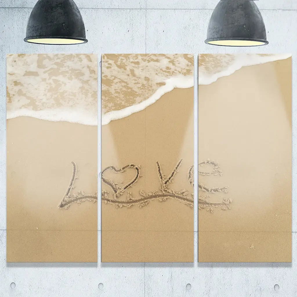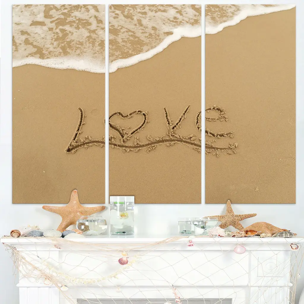 "Love Written On Sandy Seashore" Metal Wall Art, 3 Panels, 36"x28"