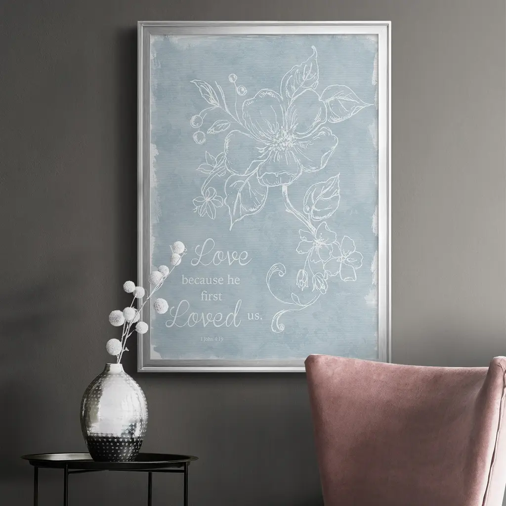 Loved Us First Premium Framed Print - Ready to Hang A Premium Framed Print created to last. Framed in distressed wood and available in an array of sizes and colors Featuring a beveled a solid wood stretcher bar, each piece comes ready to hand 4 SIZES AVAILABLE 30.5''X42.5'' - Overall Size 26.5'X36.5'' - Overall Size 22.5''x30.5'' - Overall Size 18.5''x24.5'' - Overall Size Each piece is made to order. Each piece comes with hanging hardware. Made in the USA Ready to Hang
