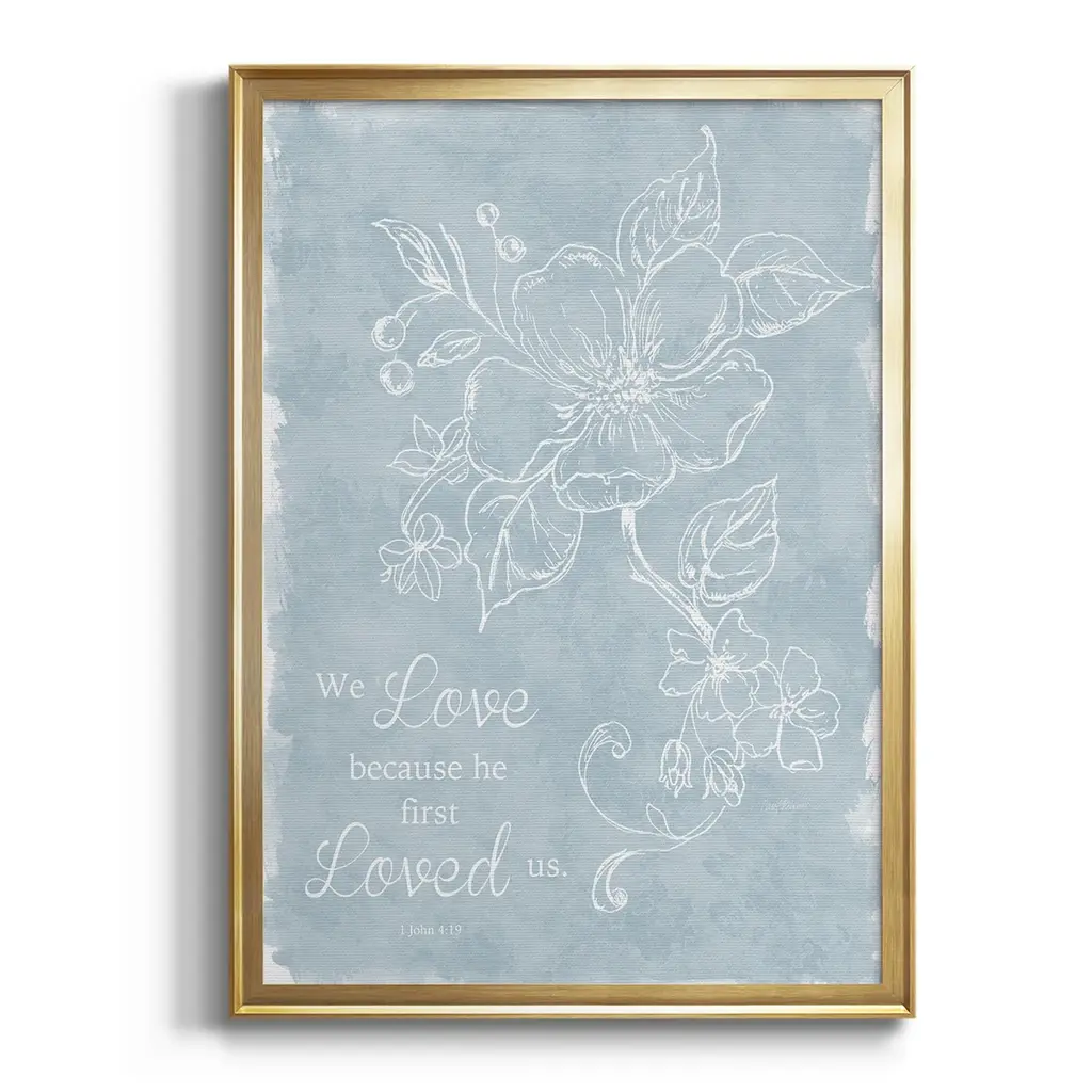 Loved Us First Premium Framed Print - Ready to Hang A Premium Framed Print created to last. Framed in distressed wood and available in an array of sizes and colors Featuring a beveled a solid wood stretcher bar, each piece comes ready to hand 4 SIZES AVAILABLE 30.5''X42.5'' - Overall Size 26.5'X36.5'' - Overall Size 22.5''x30.5'' - Overall Size 18.5''x24.5'' - Overall Size Each piece is made to order. Each piece comes with hanging hardware. Made in the USA Ready to Hang