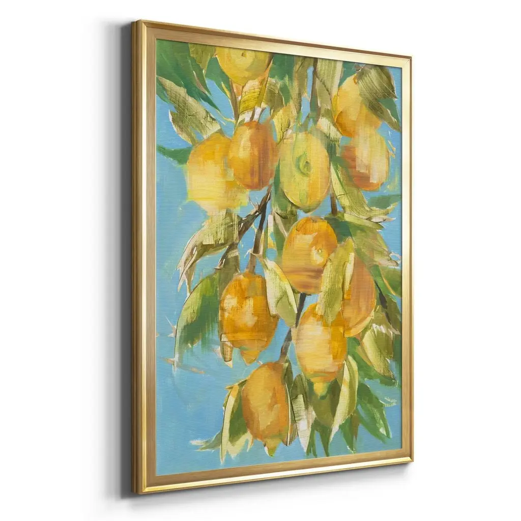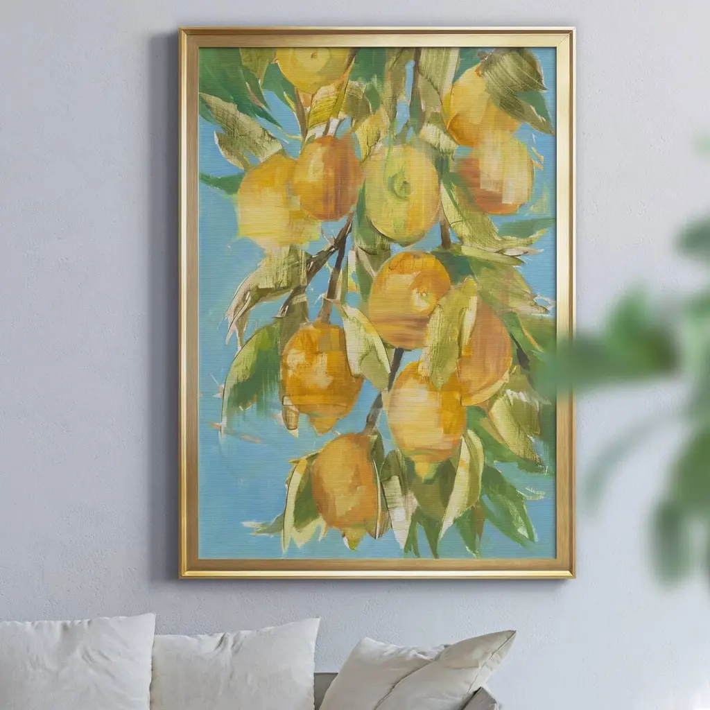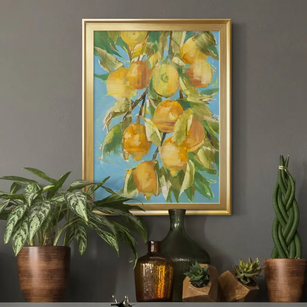 LOVELY LEMON Premium Framed Canvas - Ready to Hang A Premium Framed Canvas created to last. Framed in distressed wood and available in an array of sizes and colors Featuring a beveled a solid wood stretcher bar, each piece comes ready to hand 4 SIZES AVAILABLE 30.5''X42.5'' - Overall Size 26.5'X36.5'' - Overall Size 22''x30'' - Overall Size 18''x24'' - Overall Size Each piece is made to order. Each piece comes with hanging hardware. Made in the USA Ready to Hang Giclee Paper Print Acrylic Glass Beveled Matt Board