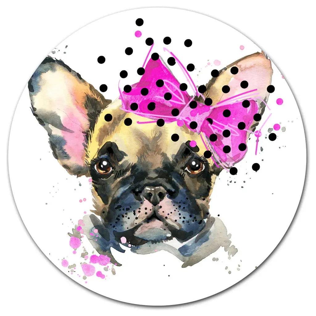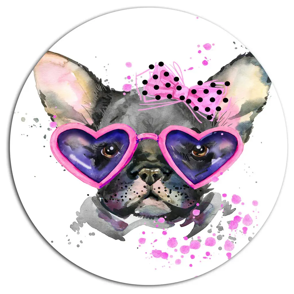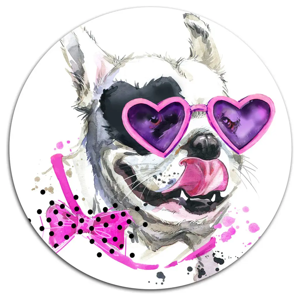 Bring Contemporary Abstraction to your home with this large Circle Metal wall art. This Lovely Puppies with Neck Shawls Metal Artwork makes it the focal point of any room or office. - White Gloss Coating ensures colors are extra vibrant with light reflection.- Aluminum grade Sheet Metal with 1 inch mounting frame on the back giving the illusion that the artwork is floating on the wall..- Mounting Brackets are included along with instructions.- High Quality Digital images are created directly into a glossy aluminum panel producing a stunning and captivating print into the glossy finish of the metal.- Water, Fire and Scratch resistant HD Aluminum panels.- Looks better than any photo paper and guaranteed to last at least 20 years- Easy to clean with a microfiber cloth. Colors are far superior to regular Canvas Art. - Easy to Hang