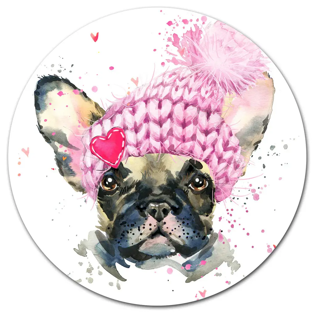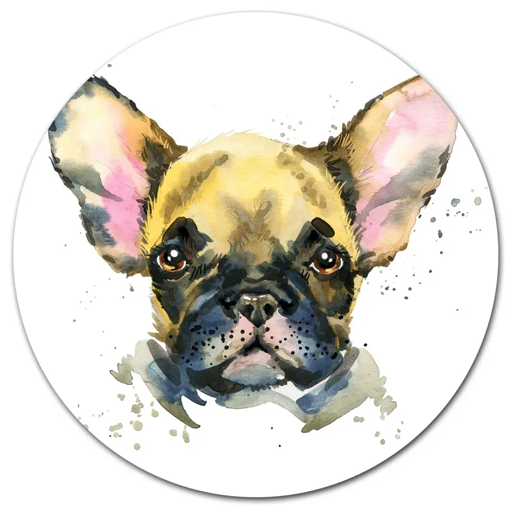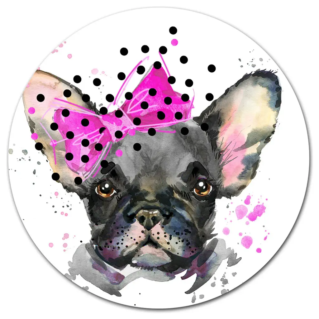 Bring Contemporary Abstraction to your home with this large Circle Metal wall art. This Lovely Puppies with Neck Shawls Metal Artwork makes it the focal point of any room or office. - White Gloss Coating ensures colors are extra vibrant with light reflection.- Aluminum grade Sheet Metal with 1 inch mounting frame on the back giving the illusion that the artwork is floating on the wall..- Mounting Brackets are included along with instructions.- High Quality Digital images are created directly into a glossy aluminum panel producing a stunning and captivating print into the glossy finish of the metal.- Water, Fire and Scratch resistant HD Aluminum panels.- Looks better than any photo paper and guaranteed to last at least 20 years- Easy to clean with a microfiber cloth. Colors are far superior to regular Canvas Art. - Easy to Hang