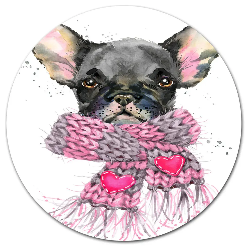 Lovely Puppies With Neck Shawls, Animal Art Round Wall Art, 36"