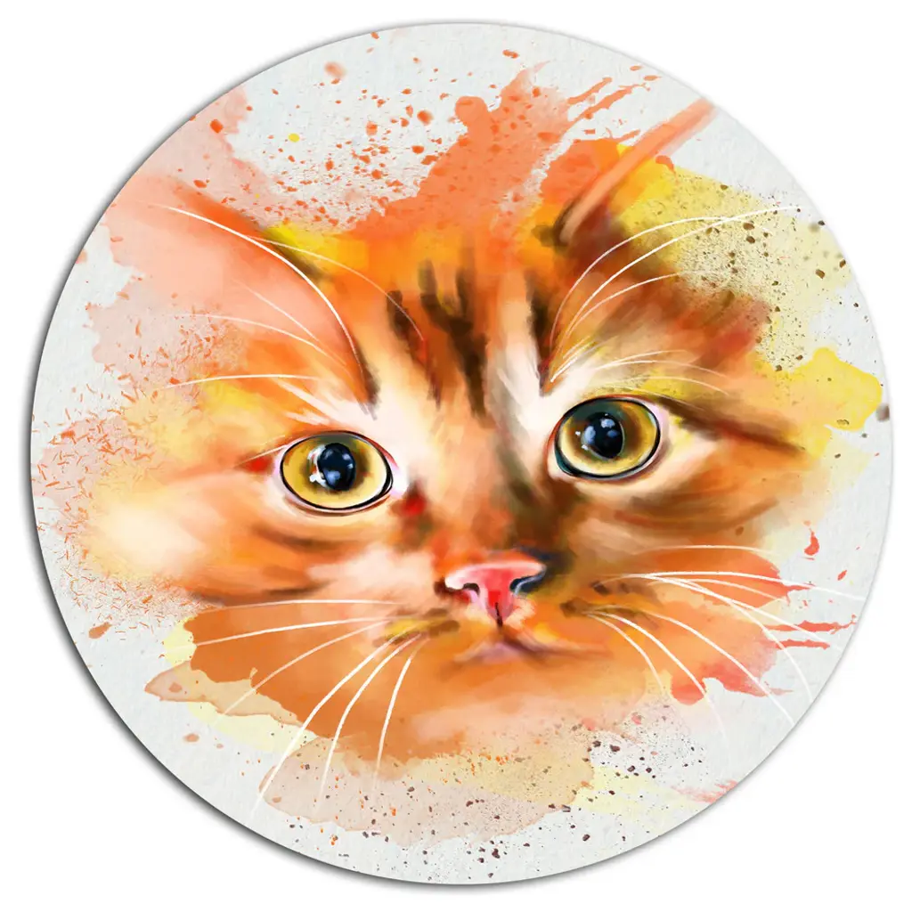 Lovely Red Watercolor Cat, Animal Disc Metal Wall Art, 23"