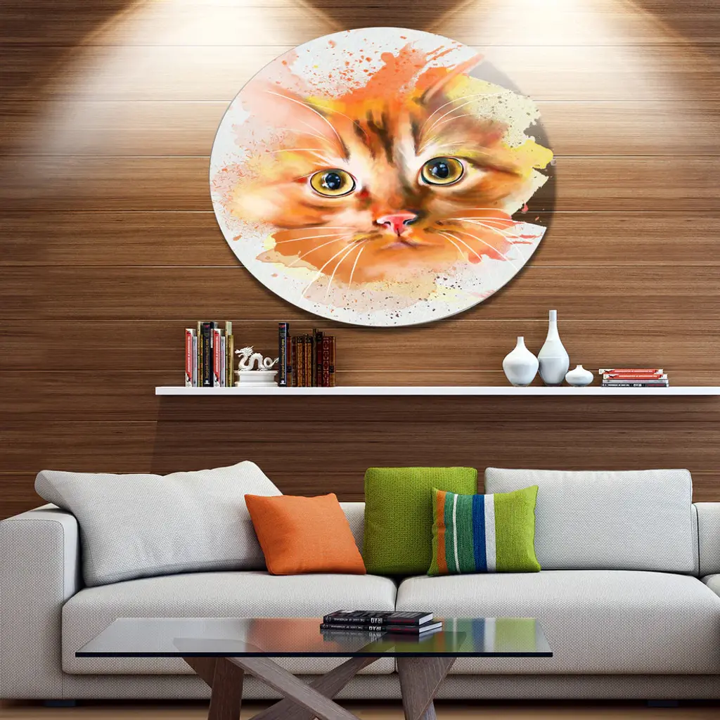 Bring Contemporary Abstraction to your home with this large Circle Metal wall art. This Lovely Red Watercolor Cat Metal Artwork makes it the focal point of any room or office. - White Gloss Coating ensures colors are extra vibrant with light reflection.- Aluminum grade Sheet Metal with 1 inch mounting frame on the back giving the illusion that the artwork is floating on the wall..- Mounting Brackets are included along with instructions.- High Quality Digital images are created directly into a glossy aluminum panel producing a stunning and captivating print into the glossy finish of the metal.- Water, Fire and Scratch resistant HD Aluminum panels.- Looks better than any photo paper and guaranteed to last at least 20 years- Easy to clean with a microfiber cloth. Colors are far superior to regular Canvas Art. - Easy to Hang