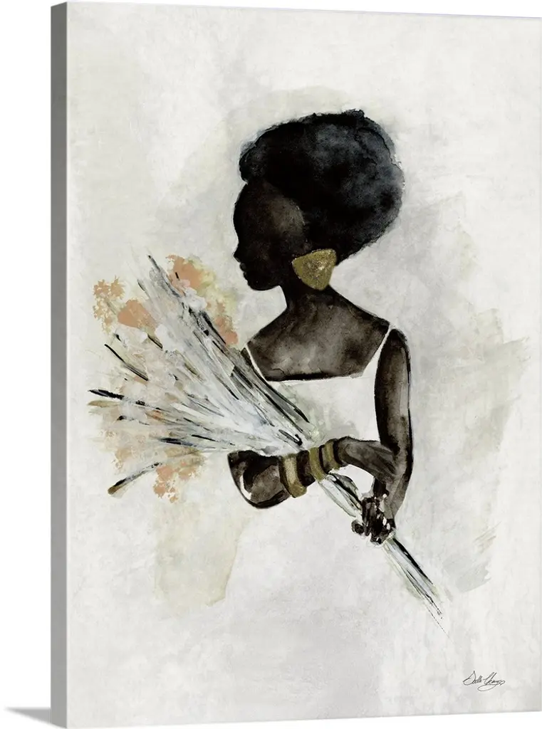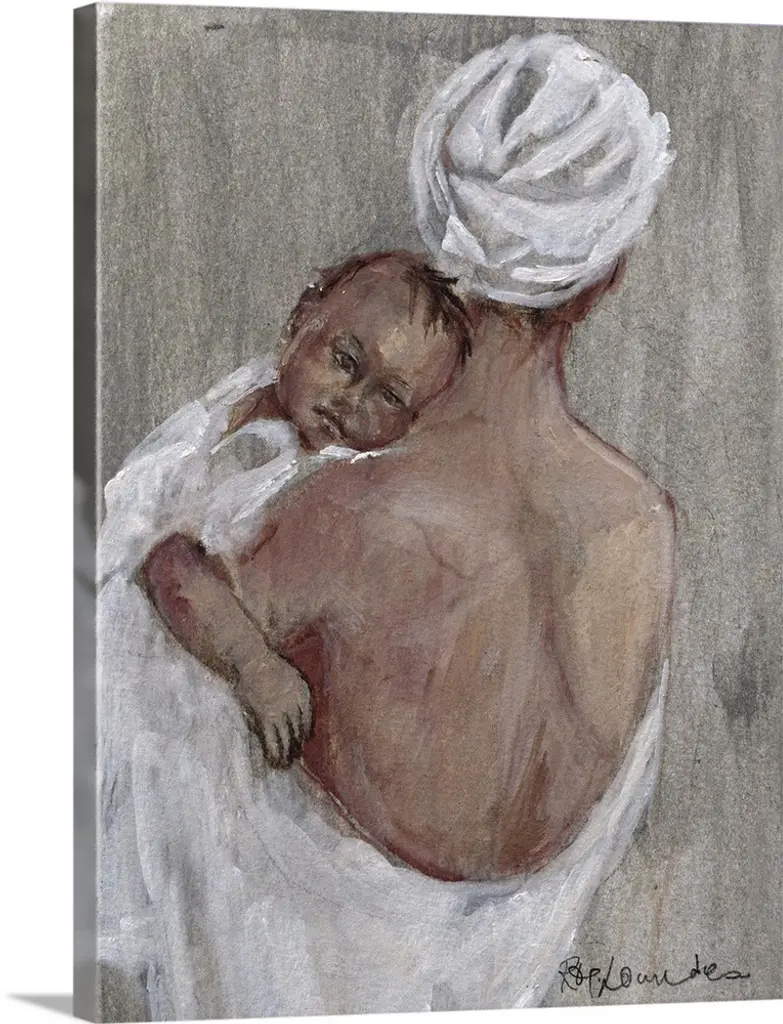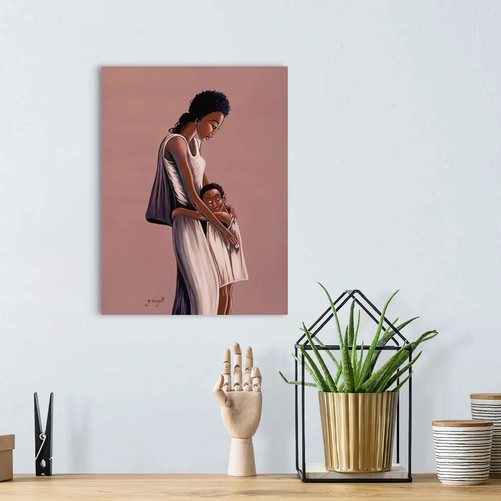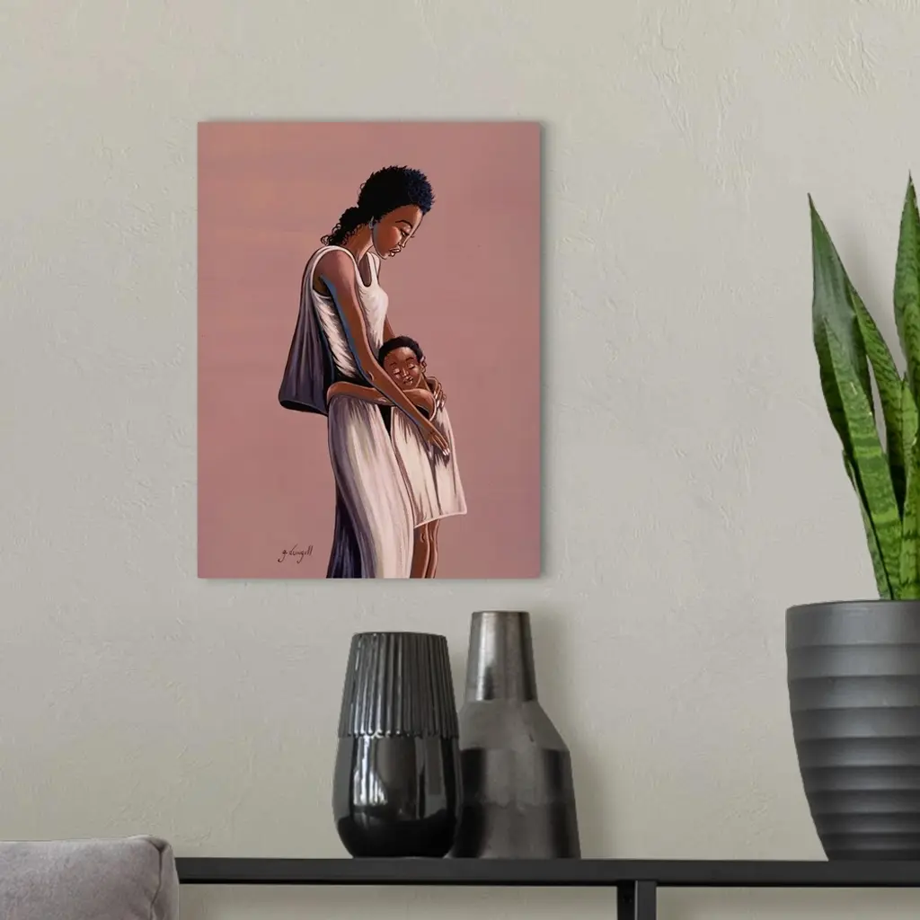 Contemporary African painting of a mother holding her child close.