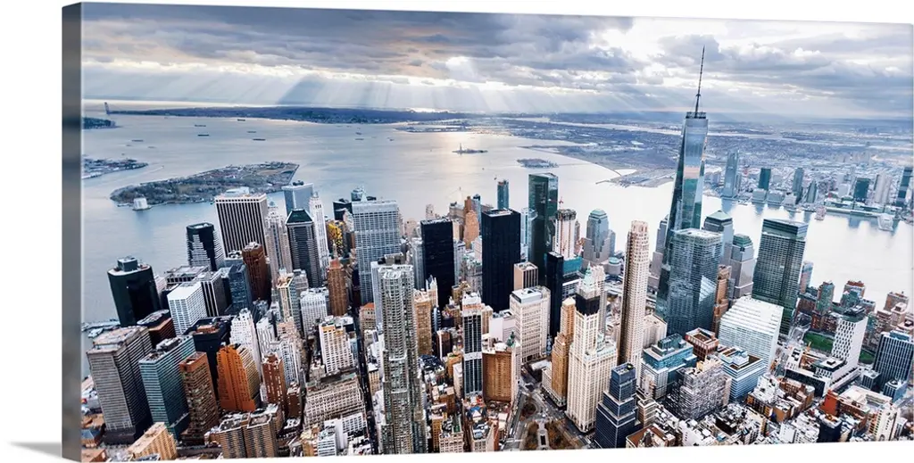 The Lower Manhattan Skyline Panorama canvas art print is sure to make an impression on anyone who sees it. This artwork is gallery wrapped around a 1-inch solid wood frame and arrives carefully packaged and entirely ready to hang on the wall. Design Art only uses the highest resolution and pigments to ensure a crisp colorful print that is never faded or pixelated. This artwork is sure to be a conversation starter in any home or office.