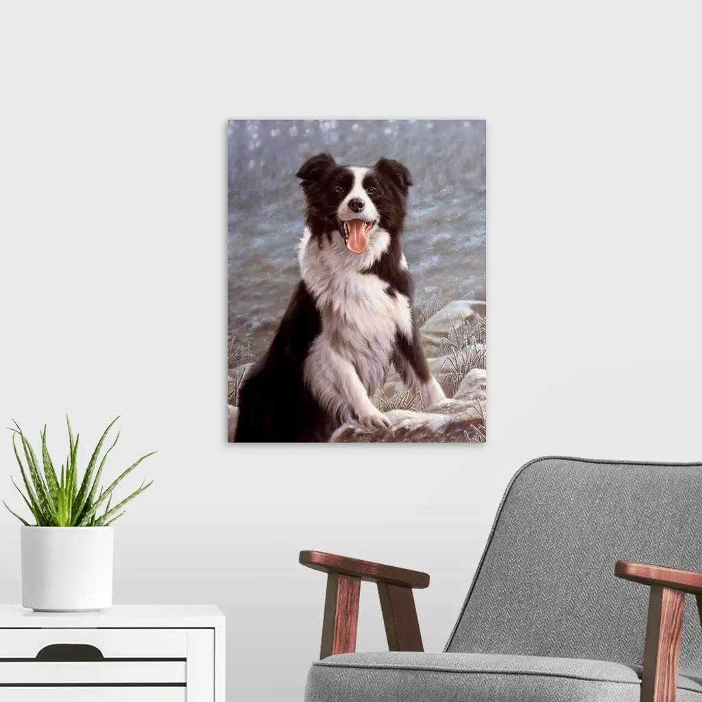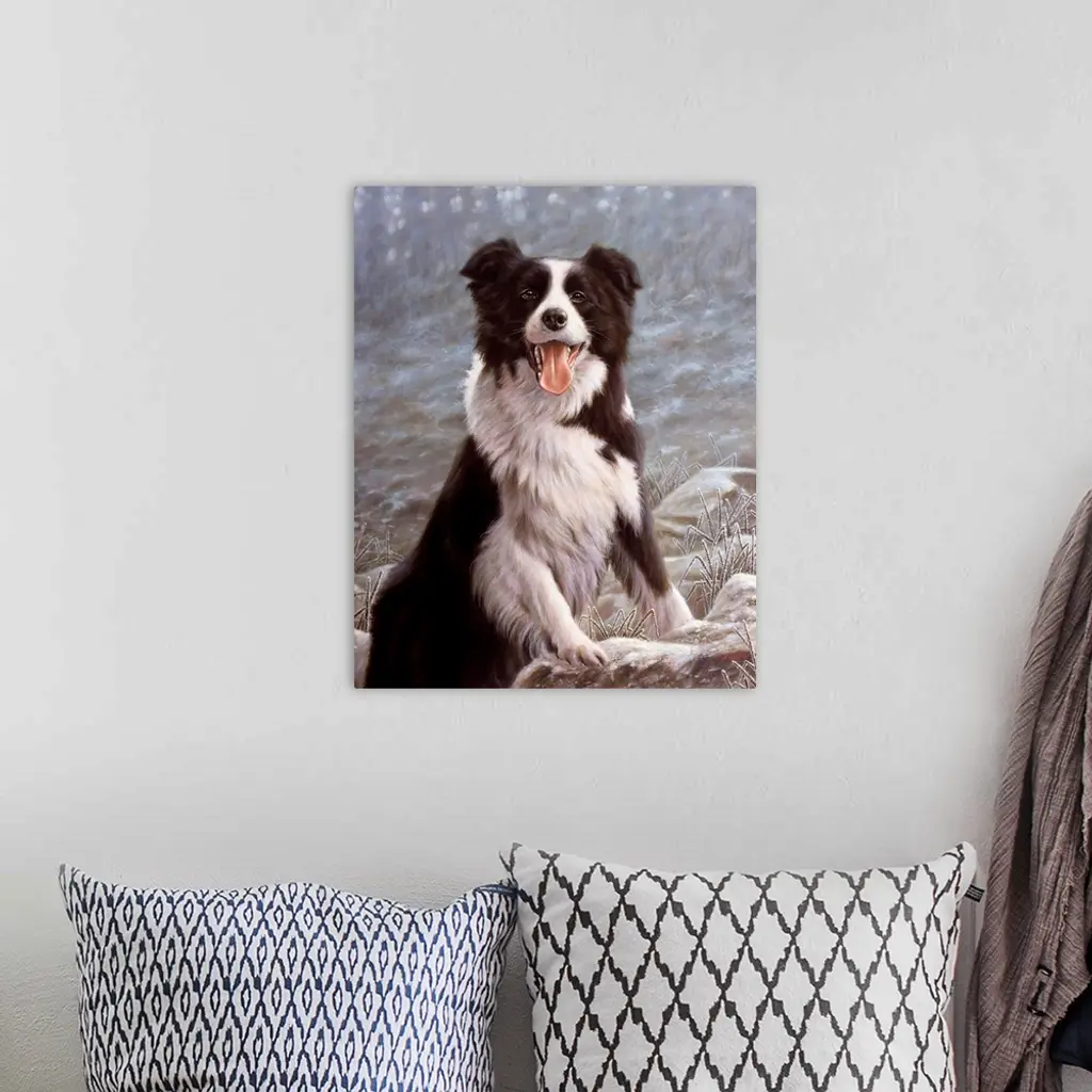 Contemporary painting of a border collie.