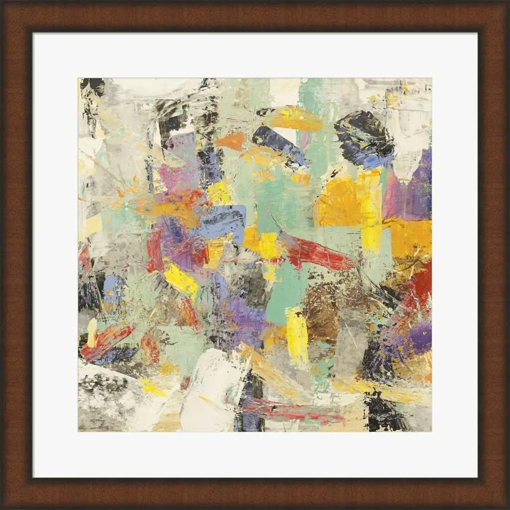 Rivoluzione Colorata I (detail) by Lucas is a high quality piece of framed artwork. The finished size of this piece is 19.75" X 19.75". It has a Slim Teak Espresso Brown Edges frame, is single matted and finished with high quality Glass. 100% Satisfaction Guaranteed.