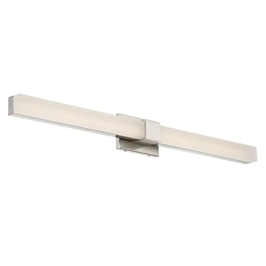 The Lucciola LED Vanity Light by Huxe has a sleek and streamlined look that adds a contemporary touch to spaces. With a slim profile, this piece is anchored by a smooth, square backplate that can be oriented in a vertical or horizontal position to best frame the area it is illuminating. An etched acrylic diffuser is clasped around its center by a square band, evenly filtering an energy-efficient light source and bringing a geometric touch to master and guest bathrooms alike.