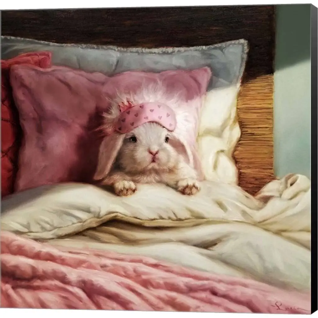 Bed Hare by Lucia Heffernan is a high quality piece of canvas artwork. The finished size of this piece is 12" X 12", and it has a depth 1.5" with black painted sides. There is a UV protective coating over the entire image, and it is ready to hang on your wall with no hardware required. 100% Satisfaction Guaranteed.