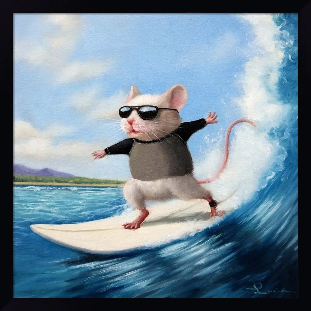 Surfs Up by Lucia Heffernan is a high quality piece of framed artwork. The finished size of this piece is 17.5" X 17.5". It has a Petite Black with Flat Front frame and is finished with high quality Acrylic Plexiglass. 100% Satisfaction Guaranteed.
